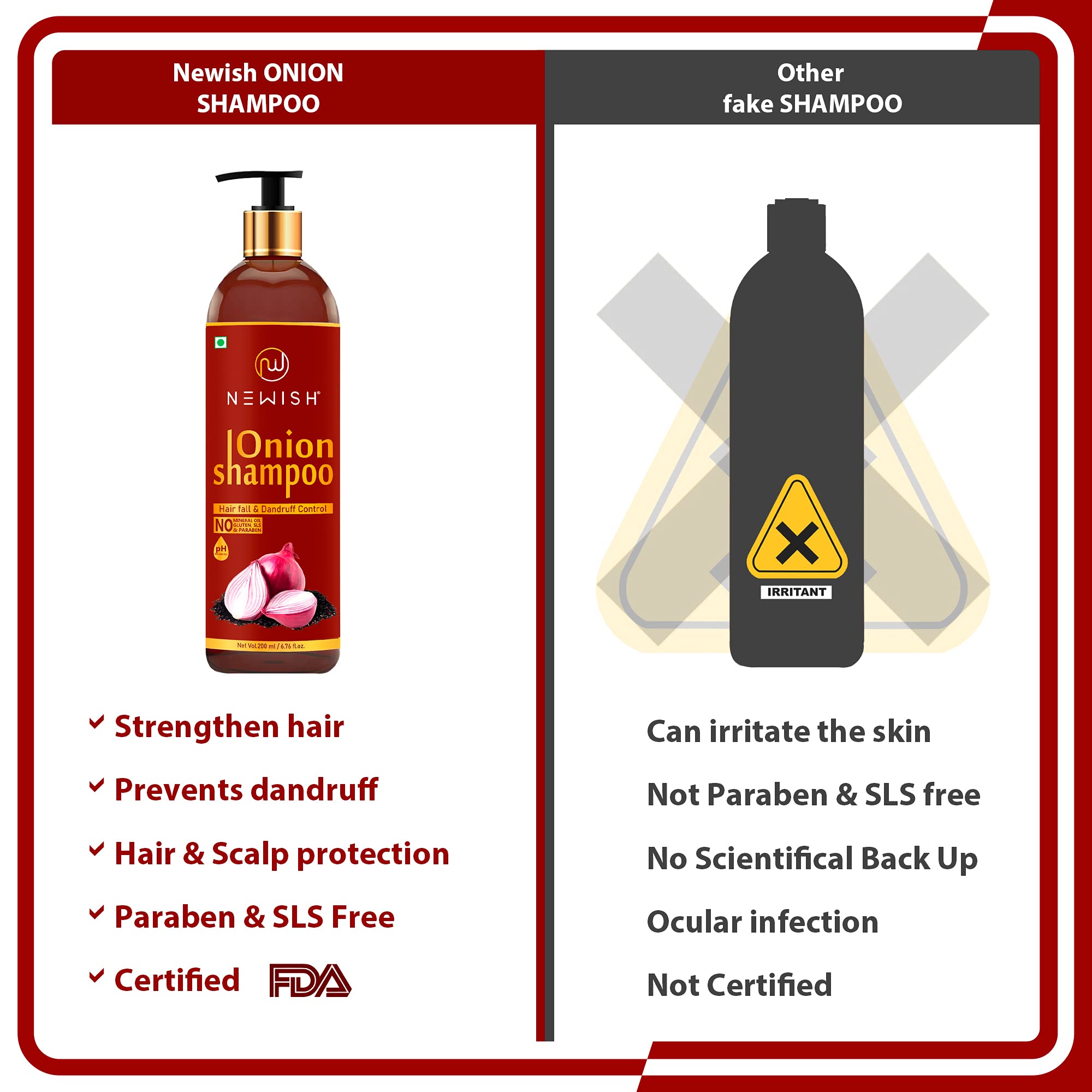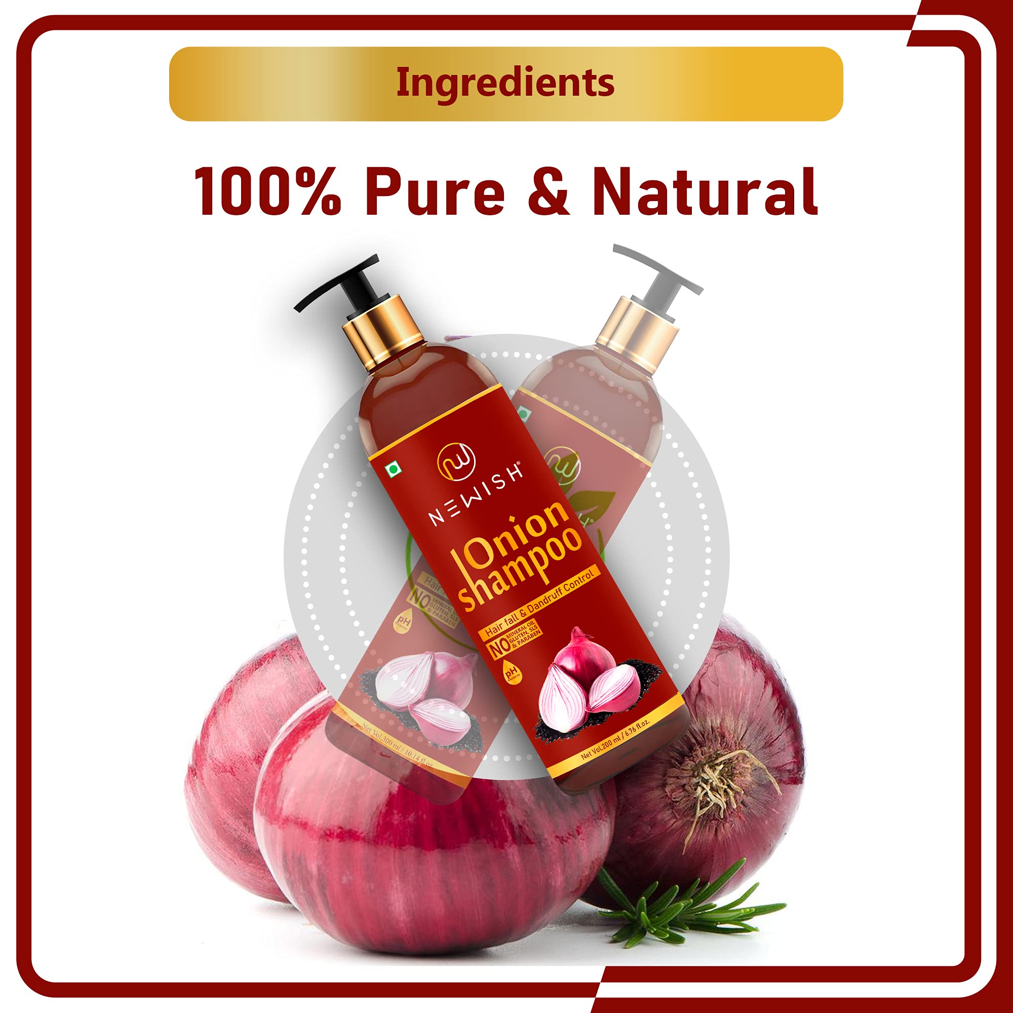 Newish Red Onion Shampoo For Hair Growth and Hairfall Control (Pack of 1)