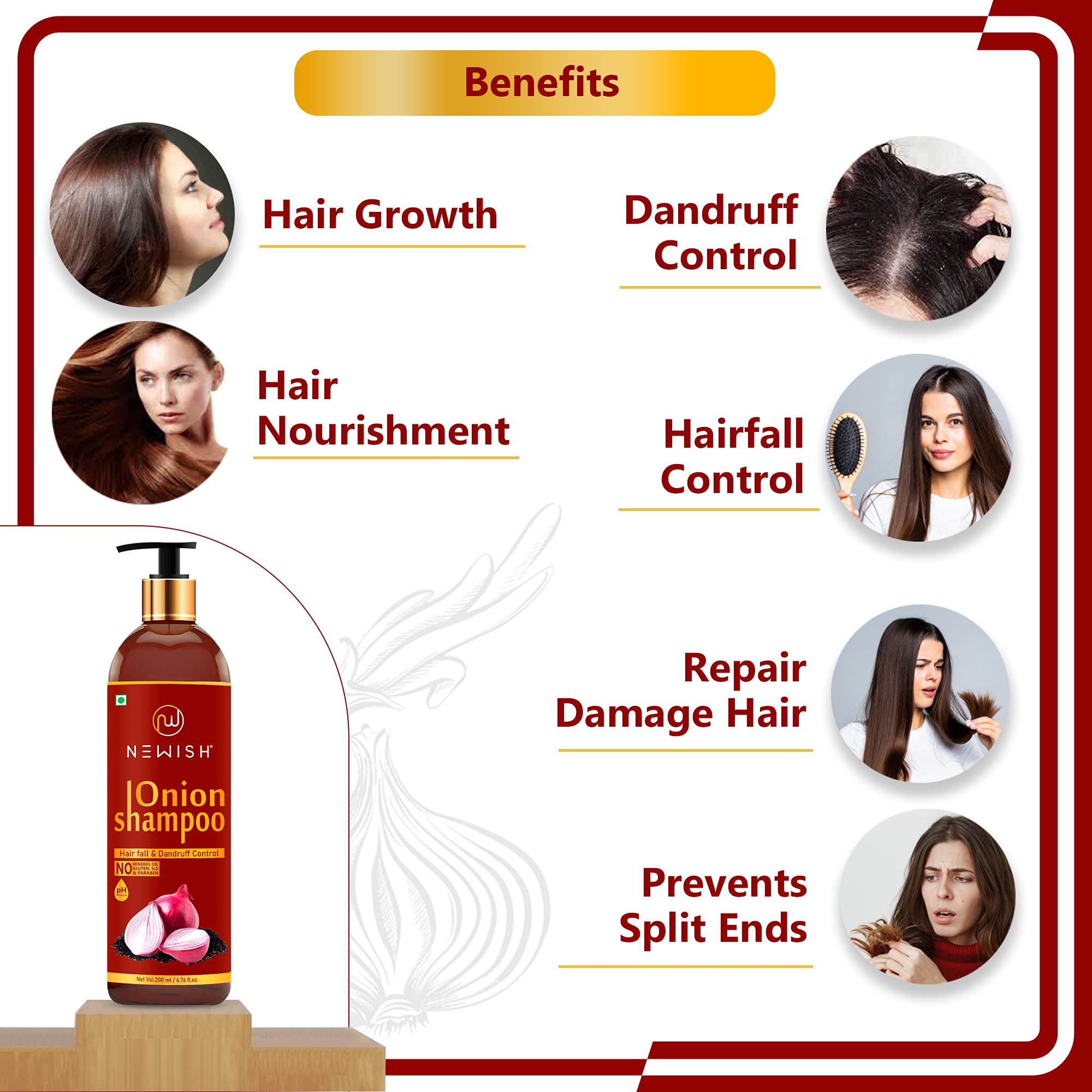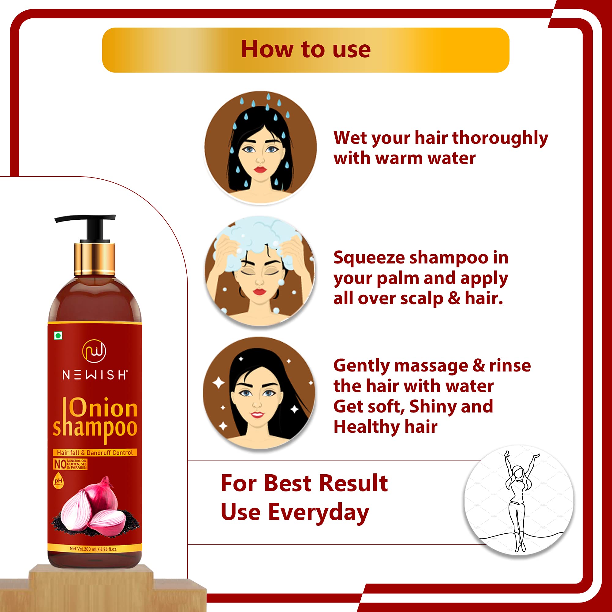 • Newish's Onion Shampoo contains no parabens sulfates color or silicones and helps to deliver maximum benefit. It is dermatologically tested.