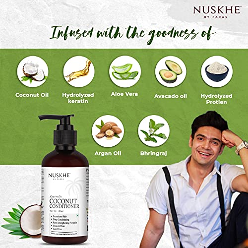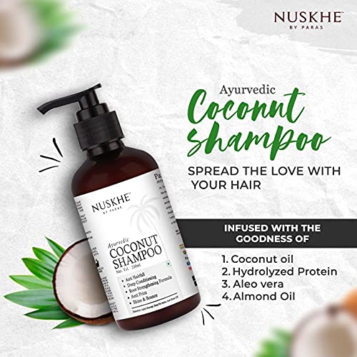 Dandruff is a common scalp condition that causes flaking and itching. It can be caused by a variety of factors such as dry skin oily skin or fungal infection. While dandruff can be frustrating and embarrassing there is a solution to get rid of it! Coconut Shampoo has been specially designed to preserve your hair's natural oils & nutrients while maintaining frizz-free hair with a healthy vibrant shine.100% Natural Products and enriched with Coco Nucifera (Coconut Oil) Hydrolyzed Aloe Barbadensis (Aloe Vera) Leaf Juice Argan Sosa Kernel (Argan) Oil Hydrolyzes Keratin Ecliptaprostrata (Bhringraj) Nuskhe by Paras Coconut conditioner provides nourishment to your hair from root to tip and s hair fall in 15-20 days and improves strength s hydration Restructures Hair Fiber and revives silkiness of parched hair and Enriches with Ayurvedic Ingredients Coco Nucifera (Coconut Oil) Hydrolyzed Aloe Barbadensis (Aloe Vera) Leaf Juice Argan Sosa Kernel (Argan) Oil Hydrolyzes Keratin Ecliptaprostrata (Bhringraj). â±Note:- Since everyone has a different scalp texture. Before using the entire amount we advise you to test the product on a small area first.