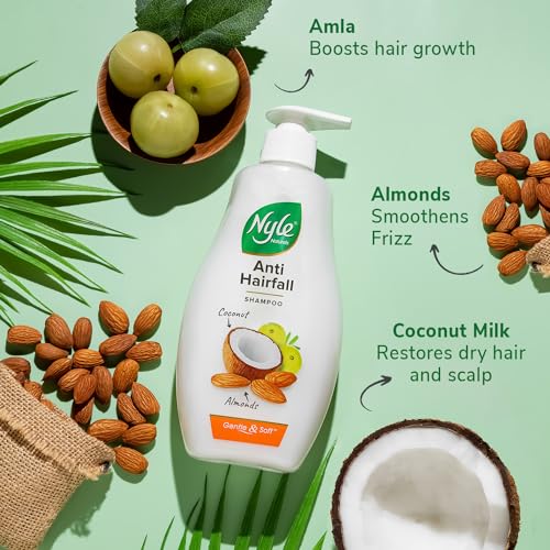 Every drop of Nyle Naturals Anti hairfall shampoo is Paraben free & contains goodness of natural extracts of Almonds Green gram sprouts and a blend of natural herbs. Almonds help make the hair strong shiny soft to touch and shiny. It strengthens your hair and protects from hairfall due to breakage. Sprouts contain vitamin C which is considered to promote hair growth. It helps you enjoy strong & healthy hair#. #Strengthens hair by reducing hair breakage. Based on lab results under test conditions.