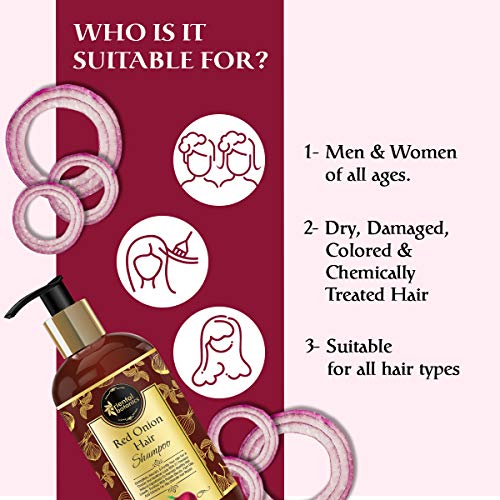 • Healing Herbs & Essential Oils- The natural ingredients in Red Onion Hair Shampoo refresh & nourish your strands to make them feel thicker and stronger.