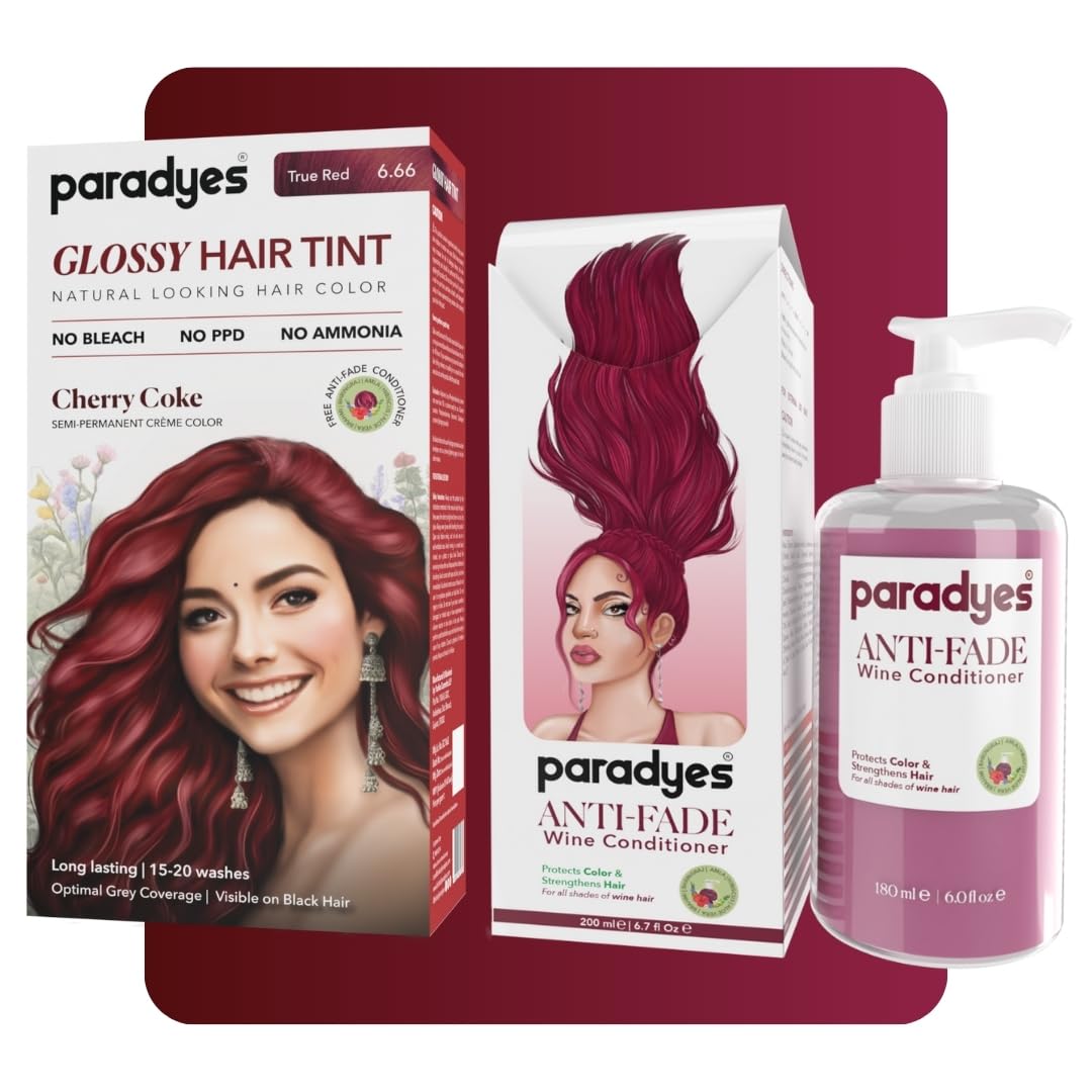 Paradyes Cherry Coke Glossy Hair Tint with Anti-Fade Wine Conditioner No Bleach Ammonia-Free Formula for Natural Black Hair Enriched with Herbal Extracts for Long-Lasting Shine