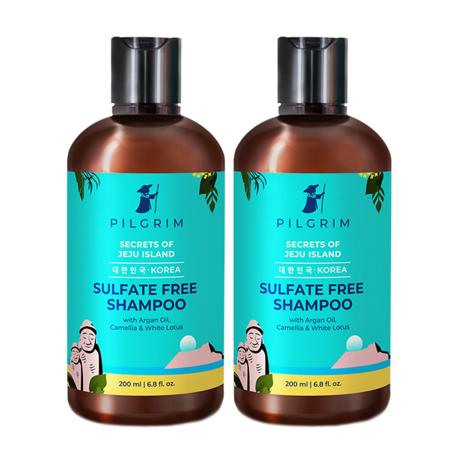 PILGRIM Korean Mild Sulphate Free Shampoo with Argan Oil Pack of 2 (200ml X 200ml) For Dry Frizzy Hair Men and Women No Sulphate No ParabenAll Hair typeKorean Beauty Secrets