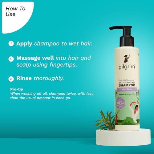 Pilgrim Spanish Rosemary & Biotin Anti Hairfall Shampoo for Reducing Hair Loss & Breakage 200ml | Rosemary shampoo for hair growth | Upto 95% stronger hairs | For all hair types | For Men & Women