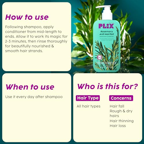 PLIX - THE PLANT FIX Rosemary Anti Hairfall Regime| Advanced Shampoo & Conditioner | Reduces Hair Fall & Strengthens Hair | Rosemary Extract, Ceramides & Plant Keratin | For Men & Women