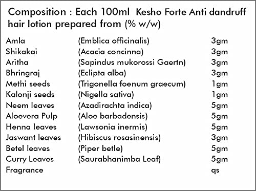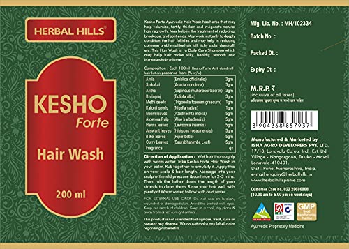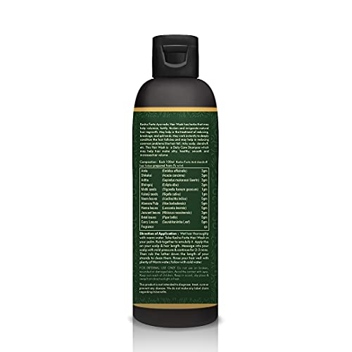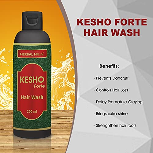 Kesho forte Ayurvedic Hair Wash (Herbal Shampoo) is a combination of various hair care herbs specially selected for their immense hair care benefits. It contains Shikakai Arithra Amla Aloevera Pulp (Aloe vera) Bhringraj Neem leaves Henna Leaves Methi seeds Kalonji seeds Jaswand leaves Betal leaves Curry leaves. It helps to reduce dandruff and hair fall and may encourage hair growth. It helps to cleanse the scalp and remove impurities. This Ayurvedic hair wash helps to reduce split ends and works on breakages. It helps to bring back the natural shine and strength of your hair.