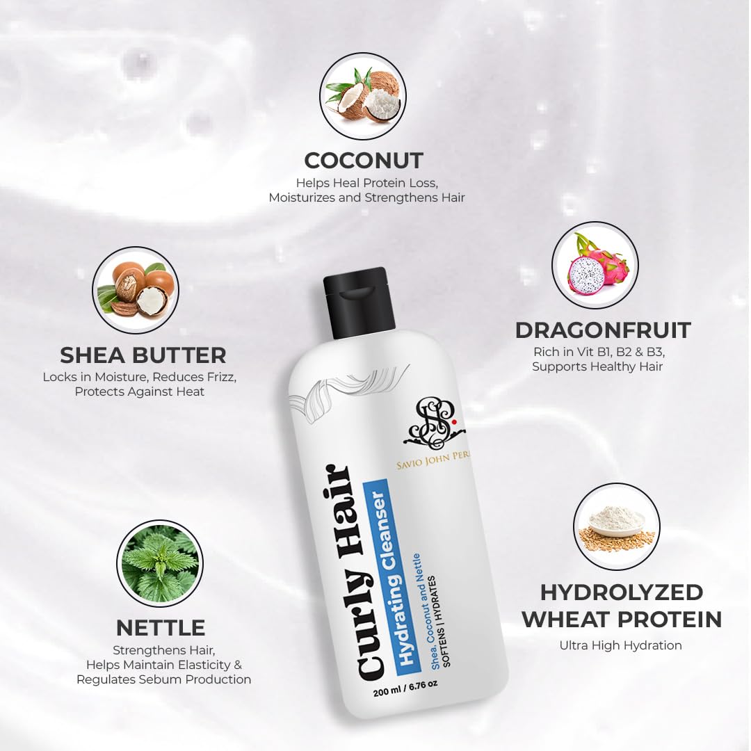Prolixr Curly Hair Hydrating Cleanser | Wavy and Curly hair products | Hydration Nourishment and Protection | Enriched with Coconut Shea Butter Dragonfruit Hydrolyzed Wheat Protein Nettle | Magic hair care for curls | By Bollywood Hair Stylist Savio John Pereira - 200ml