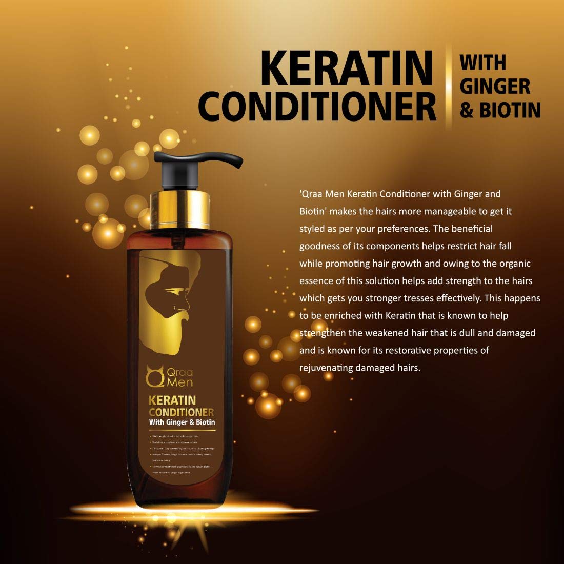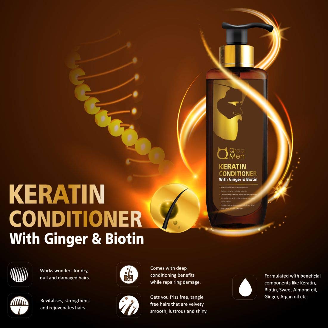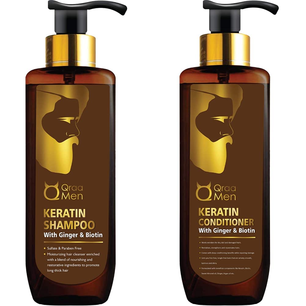 Qraa Men Keratin Shampoo with Ginger and Biotin for Nourished and Thick Hair And Qraa Men Keratin Conditioner with Ginger and Biotin for Dry and Damaged Hair