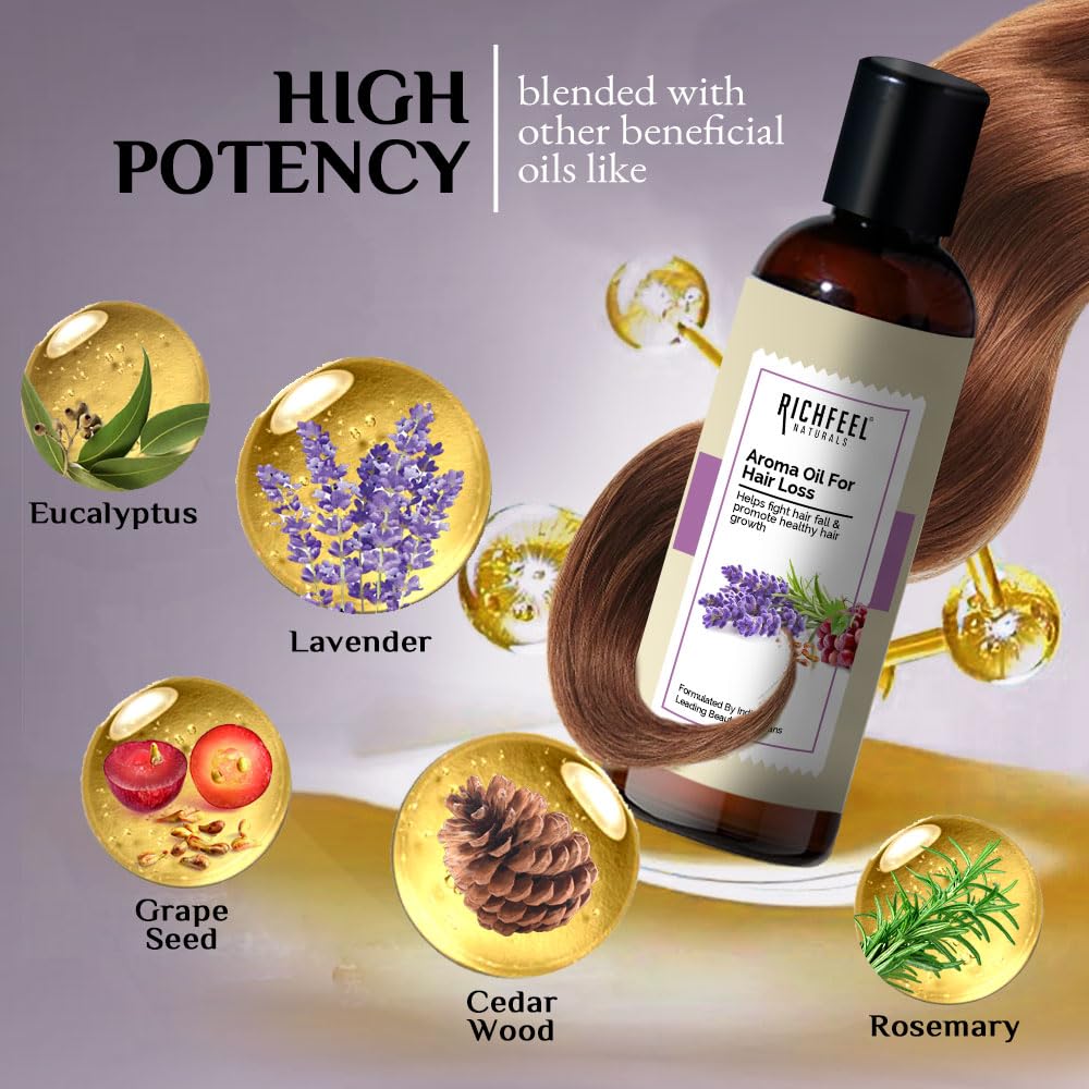 Richfeel Oil For Hair Loss infused with Rosemary Lavender & Grapeseed Oil | For Hair Fall Control and Hair Growth | (200ml (Pack of 2))