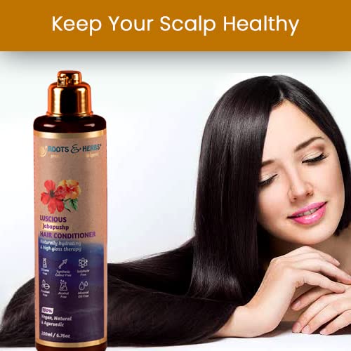 Roots & Herbs Ayurvedic Natural Treatment 100% Vegan No Paraben Jabapushp Lucious Hair Conditioner for Men and Women - 200 ml