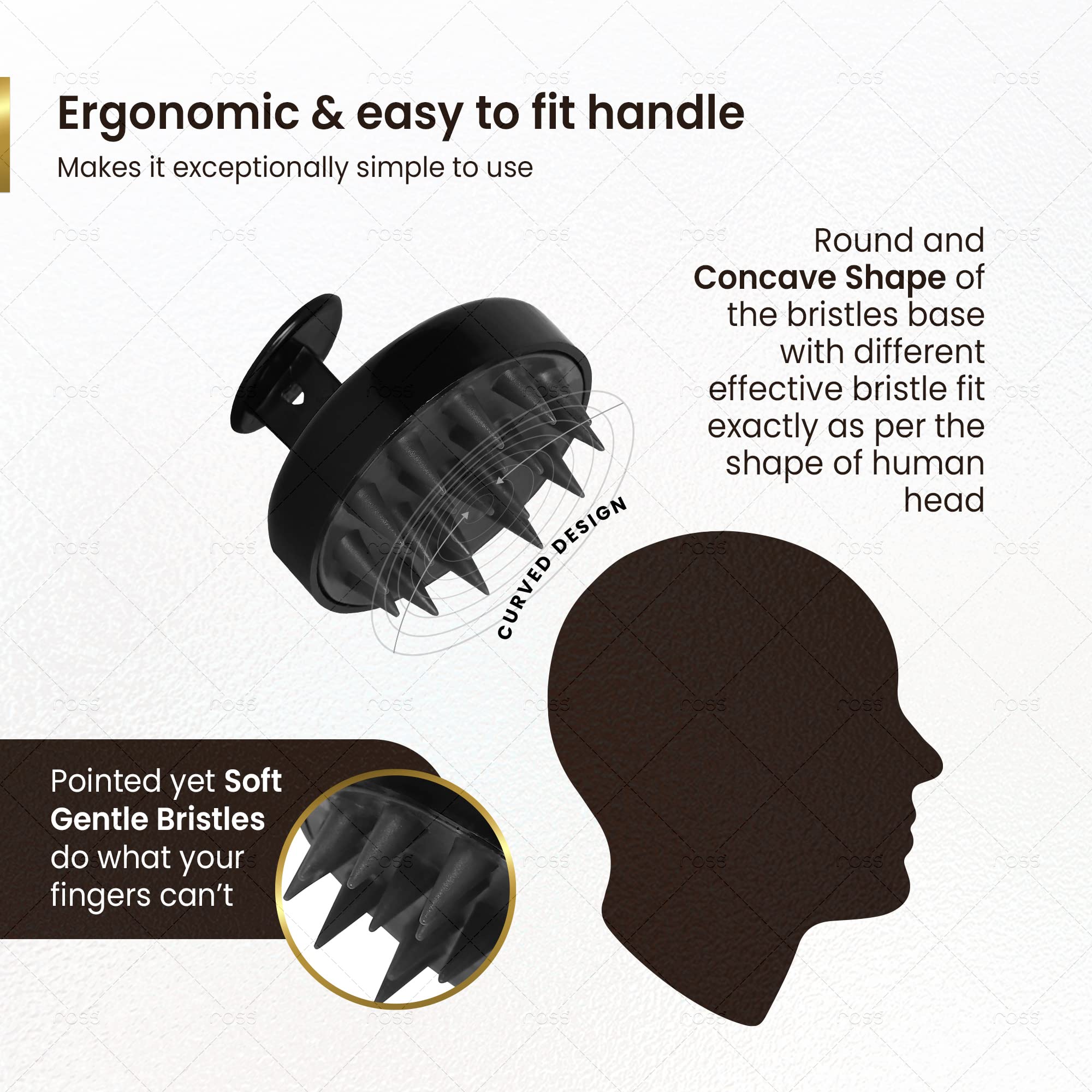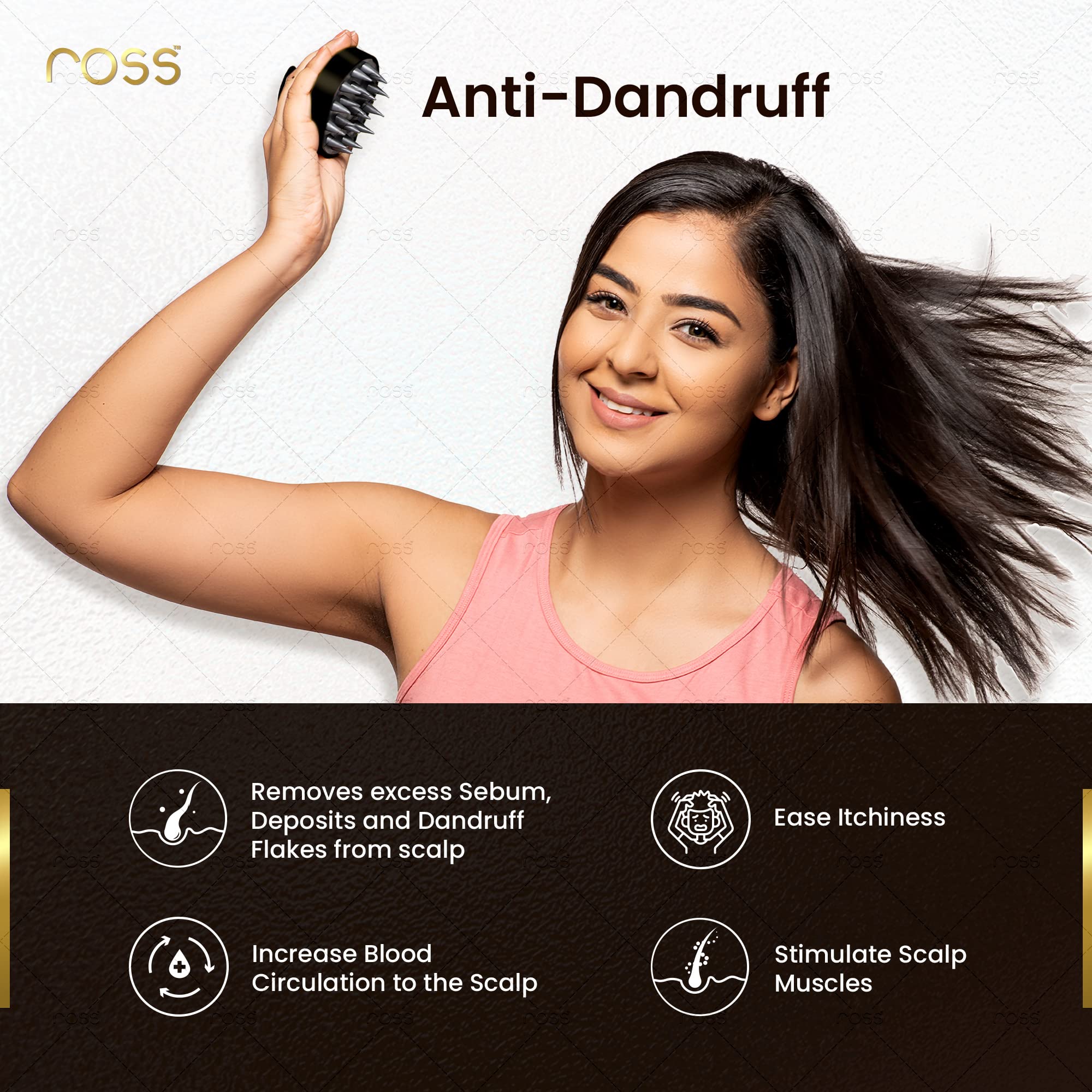 Ross Round Hair Scalp Massager Shampoo Brush Super Soft Bristles Exfoliating Anti-Dandruff (Black) is a perfect solution for giving your hair and scalp a good and thorough deep-cleaning removing all dirt and residue from everyday pollution. It o massages your scalp to promote circulation and ease itchiness. It is completely manually operated and is very light . It's ergonomically-adaptable handle perfectly fits in your hand to give you strong control. Ross Hair Scalp Massager Shampoo Brush is good for all types of hair no matter thick or thin wet or dry. It is highly used to exfoliate scalp massaging scalp during shampoo and distributing hair gels or waxes. Ross Hair Scalp Massager Shampoo Brush is made up of high quality plastic and high-grade bristles. Ross Hair Scalp Massager Shampoo Brush is a durable brush and does not break or dismantle easily unlike most brushes present in the market.