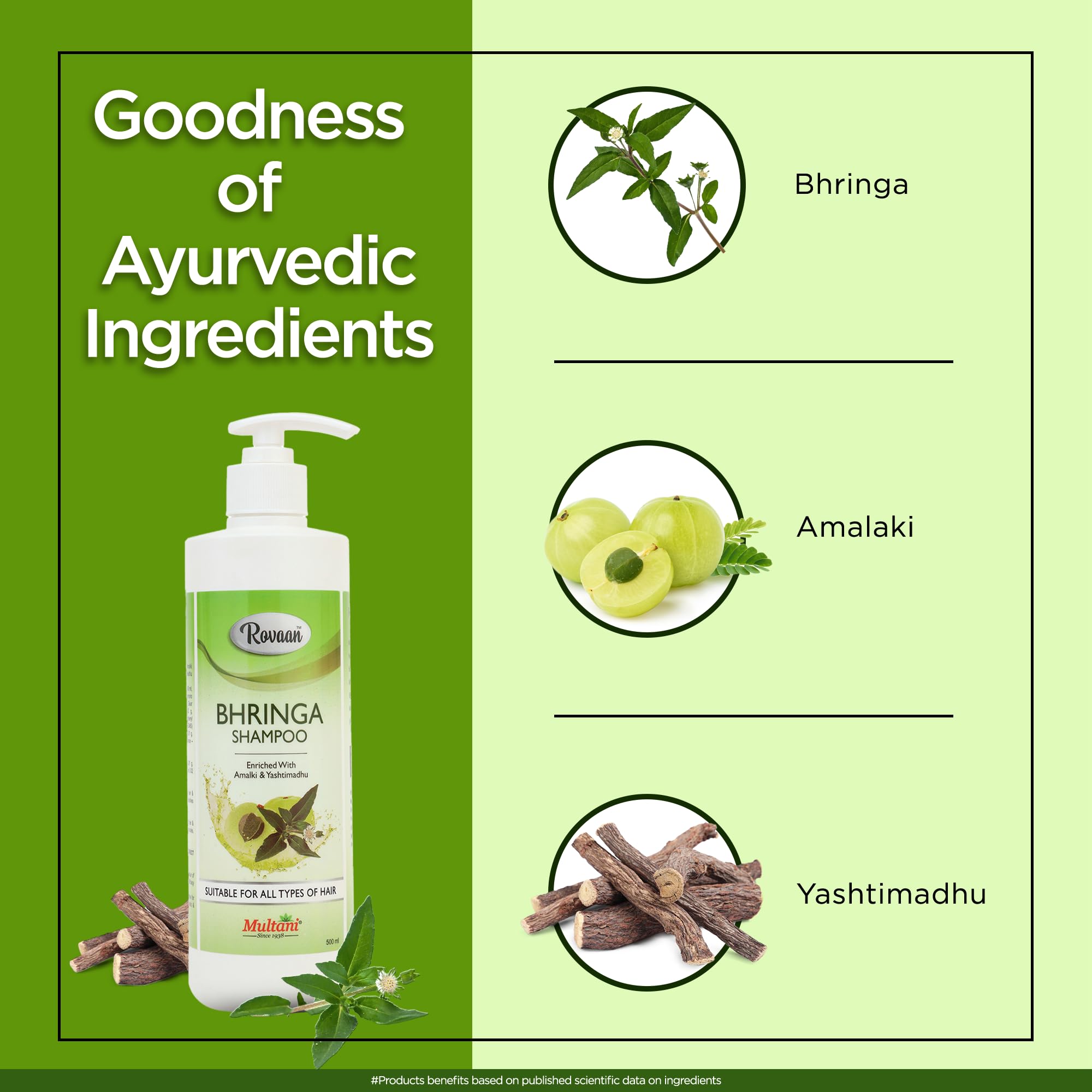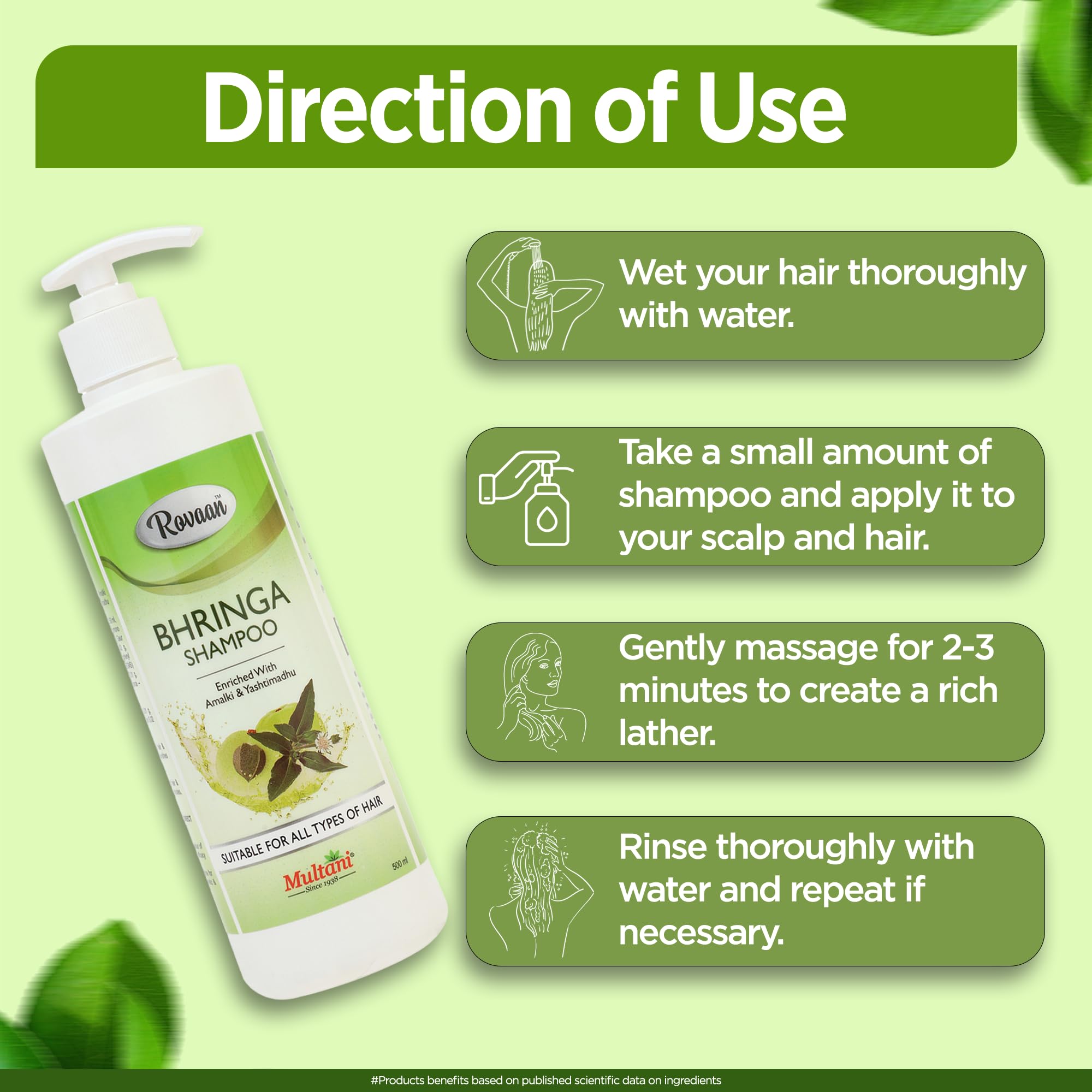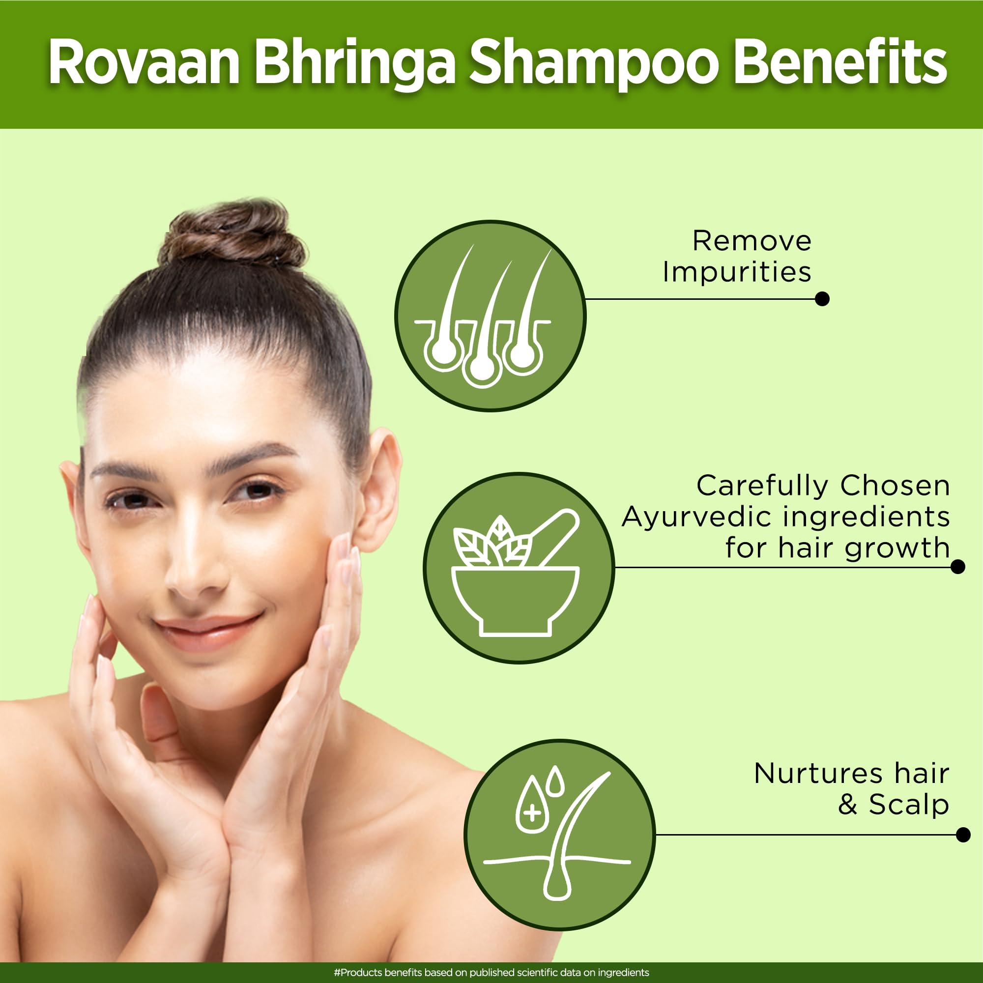 Rovaan Bhringa Shampoo for Controlling Dandruff & Hair fall | Shampoo for Reducing Scalp Irritation | Strengthen Hair Follicles |Suitable for All Hair Types 500ml