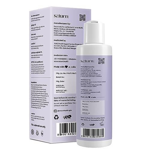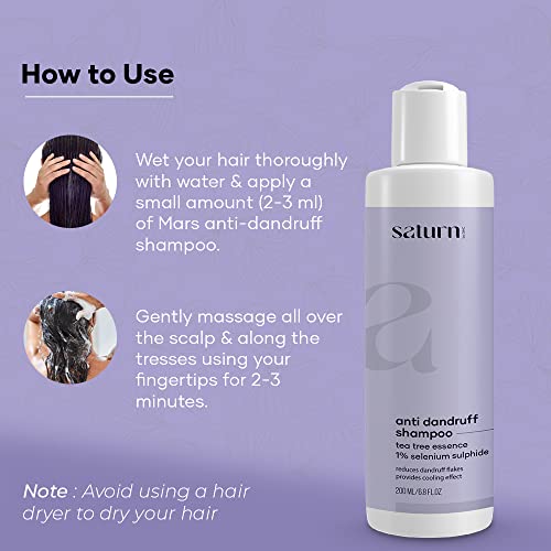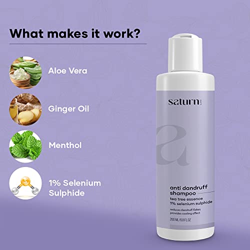 A healthy hair care routine with a one-stop solution to dandruff problem. Saturn by GHC''s Anti Dandruff Shampoo has powerful ingredients that soothe moisturise & provide a cooling effect to the scalp. A blend of tea tree extract ginger oil selenium sulfide 1% & ZPTO this shampoo helps manage flakes scalp & clears the build-up of excess sebum.