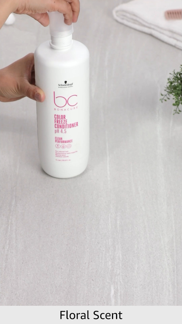 NEW BC Bonacure range is powered with Vegan Keratin Complex and Cell Equalizer technology. Vegan Keratin Complex helps improve cortex strength and Cell equalizer helps repair the outer cuticle of the hair. BC Bonacure Color Freeze Conditioner gently conditions slightly porous and colour treated hair. DIAGNOSIS: Hair is slightly porous and colour treated and client wants to maximise colour retention. WHAT IT DOES: Facilitates detangling and improves combability The formula helps to bring hair back to its optimal pH level and prevent colour fading Revives dull colours and adds shine to colour treated hair Helps to smoothen the surface of the hair HOW IT WORKS: Its soft formula gently conditions the hair while keeping the colour without overburdening. pH 4.5 Balancer Technology brings hair to its optimal pH level to perfectly lock in colour pigments. For long-lasting intense colour. HOW TO USE: Apply to towel-dried hair (8-12g) and work in. Rinse thoroughly after 2 min.