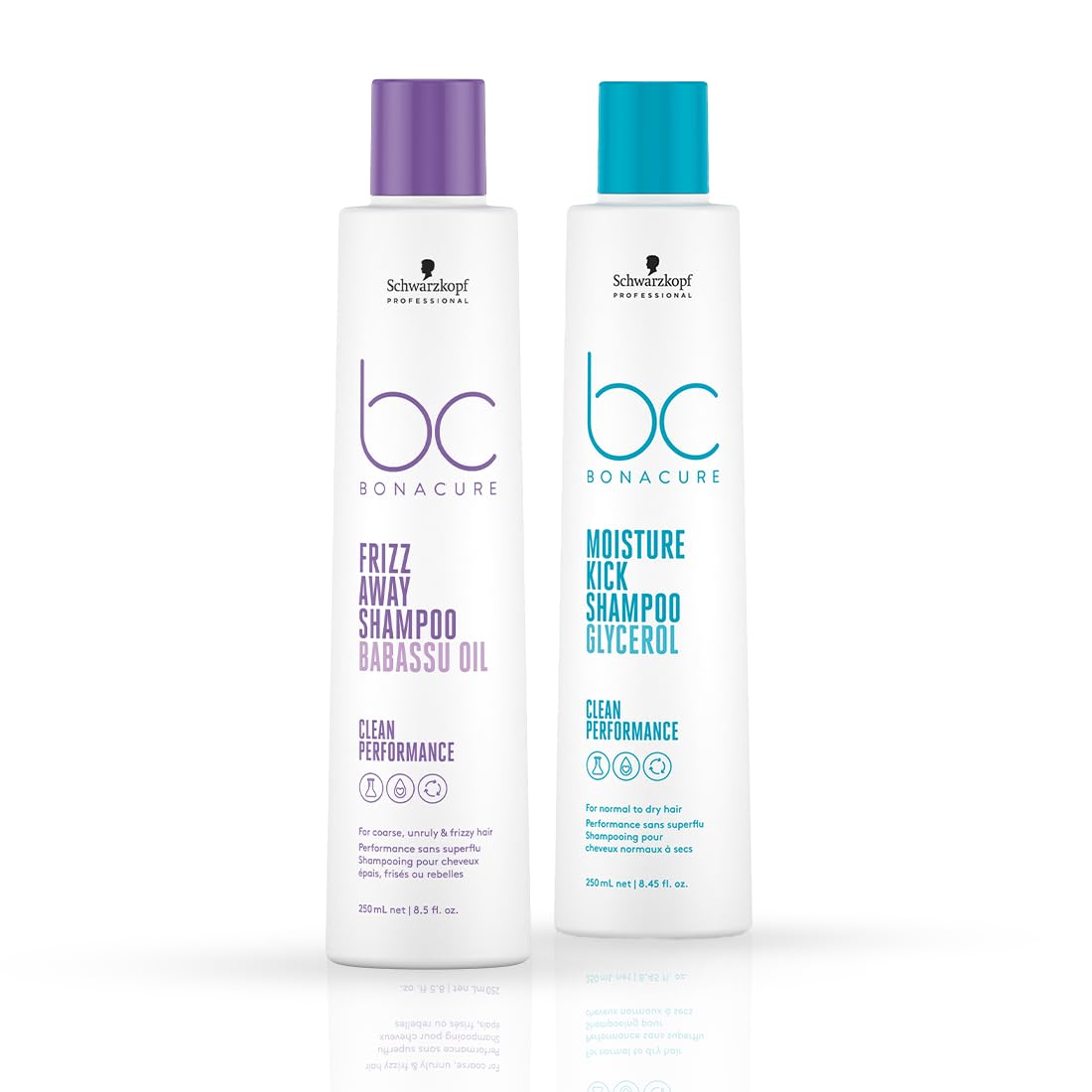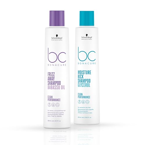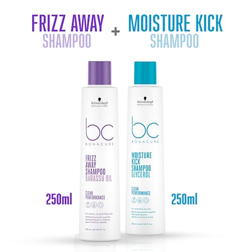 Schwarzkopf Professional Bonacure Frizz Away Shampoo with Babassu Oil, 250ml and Bonacure Moisture Kick Shampoo, 250 ml