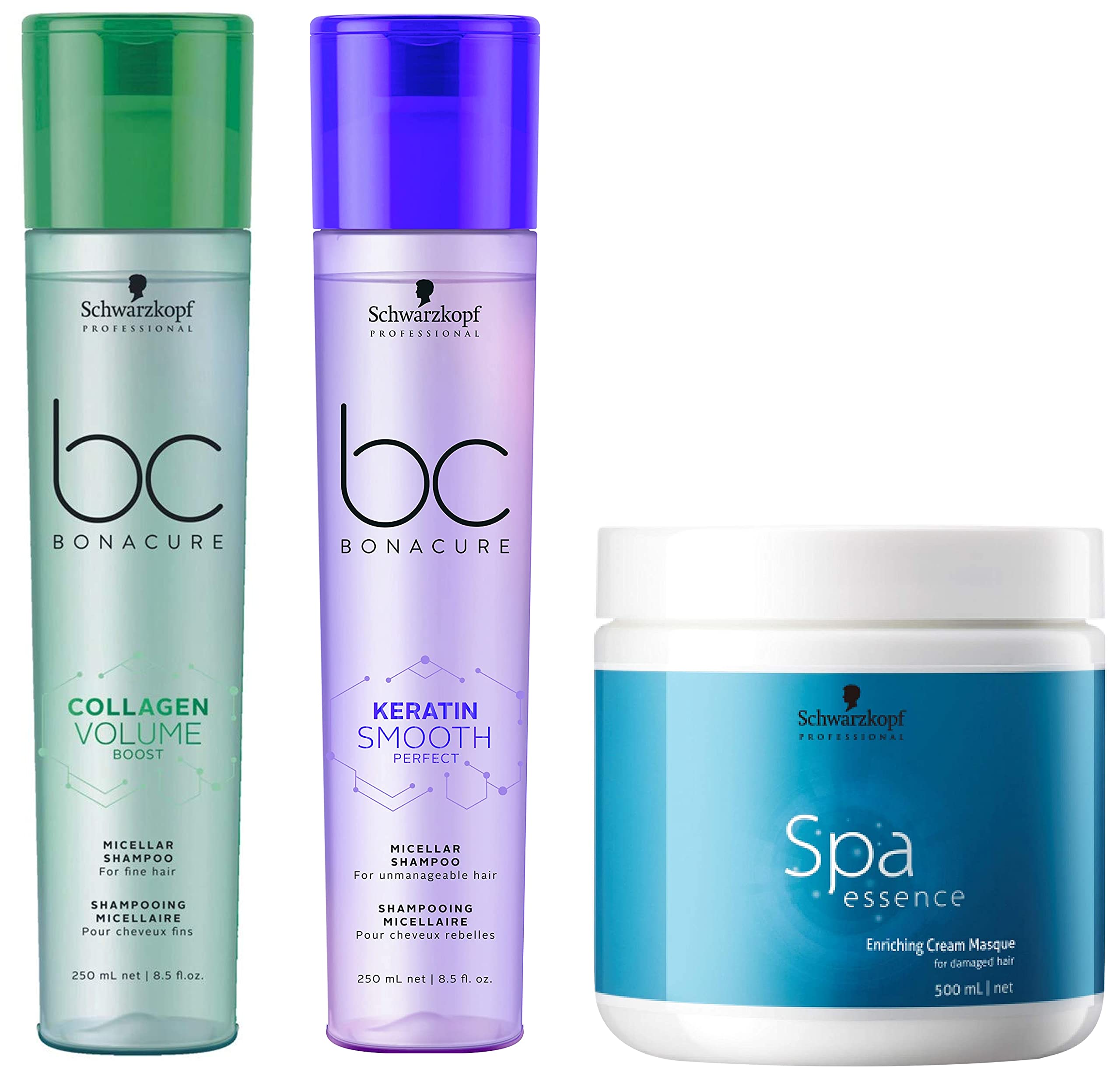 Schwarzkopf Professional Bonacure Keratin Micellar Shampoo &Schwarzkopf Professional Spa Essence Enriching Masque &Schwarzkopf Professional Bonacure Collagen Volume Boost Micellar Shampoo 250 ml