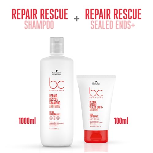 Schwarzkopf Professional Bonacure Peptide Repair Rescue Micellar Shampoo, 1L & Schwarzkopf Professional BC Peptide Repair Rescue Sealed Ends, Red, 75 ml