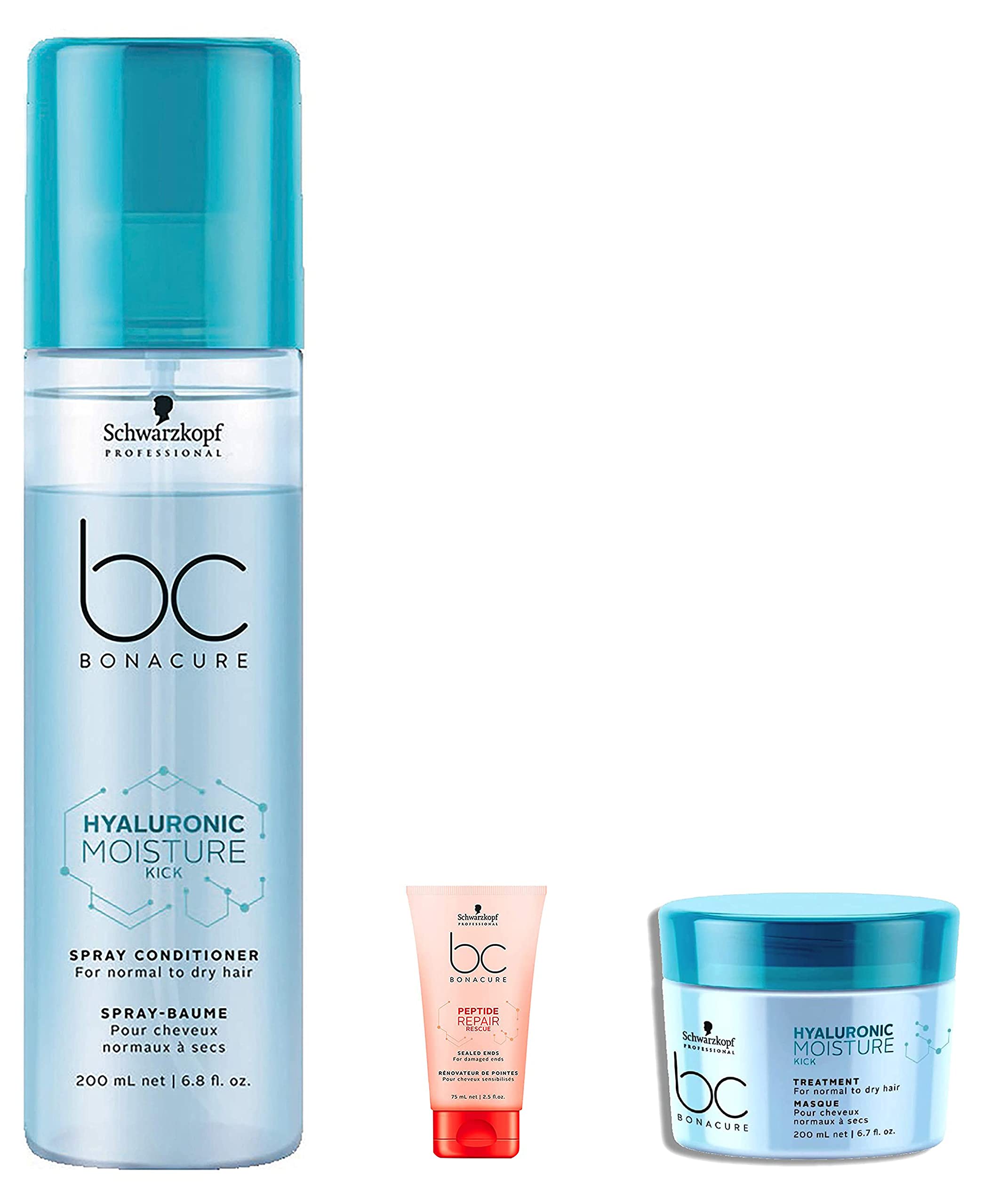 Schwarzkopf Professional Moisture Hair Mask&Schwarzkopf Professional Moisture Kick Spray Conditioner &Schwarzkopf Professional Bonacure Peptide Repair Rescue Sealed Ends