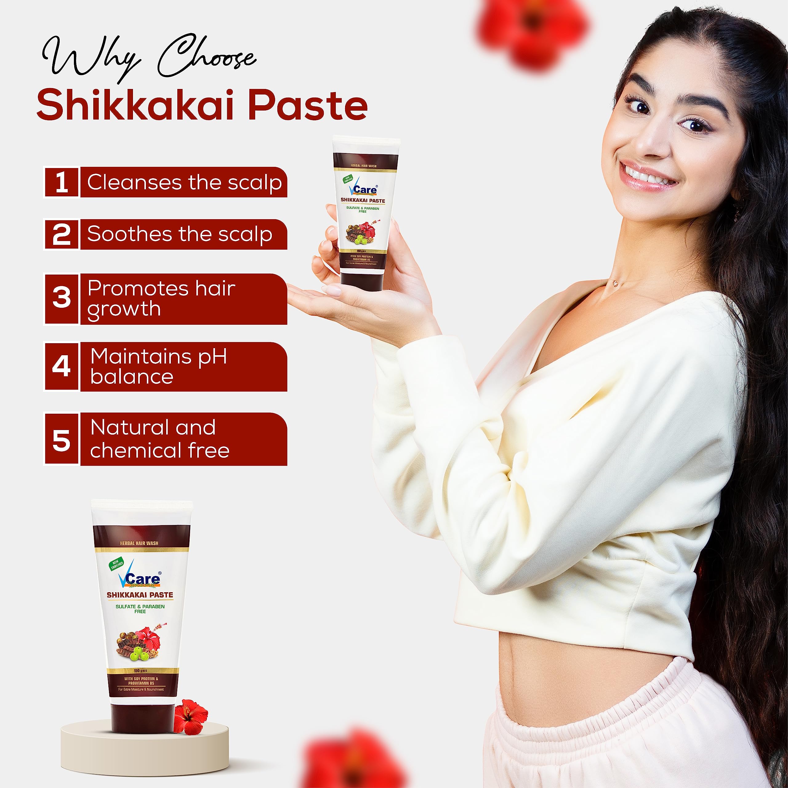 HEALTHY LONG HAIR: VCare Shikkakai Paste strengthens reduces breakage and supports natural hair growth. It contains D-Panthenol promoting softness and shine while the natural Shikakai powder stimulates hair growth and reduces hair fall after regular usage