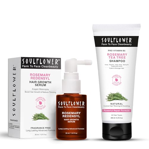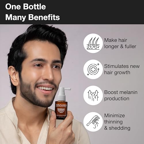 Soulflower Rosemary Redensyl Serum has long-lasting advanced formula darkening booster- infused with potent proven and effective ingredients like Rosemary Redensyl Melanogray & Anagain to fully restore hair density prolong hair cycle give hair growth and boost melanin production.