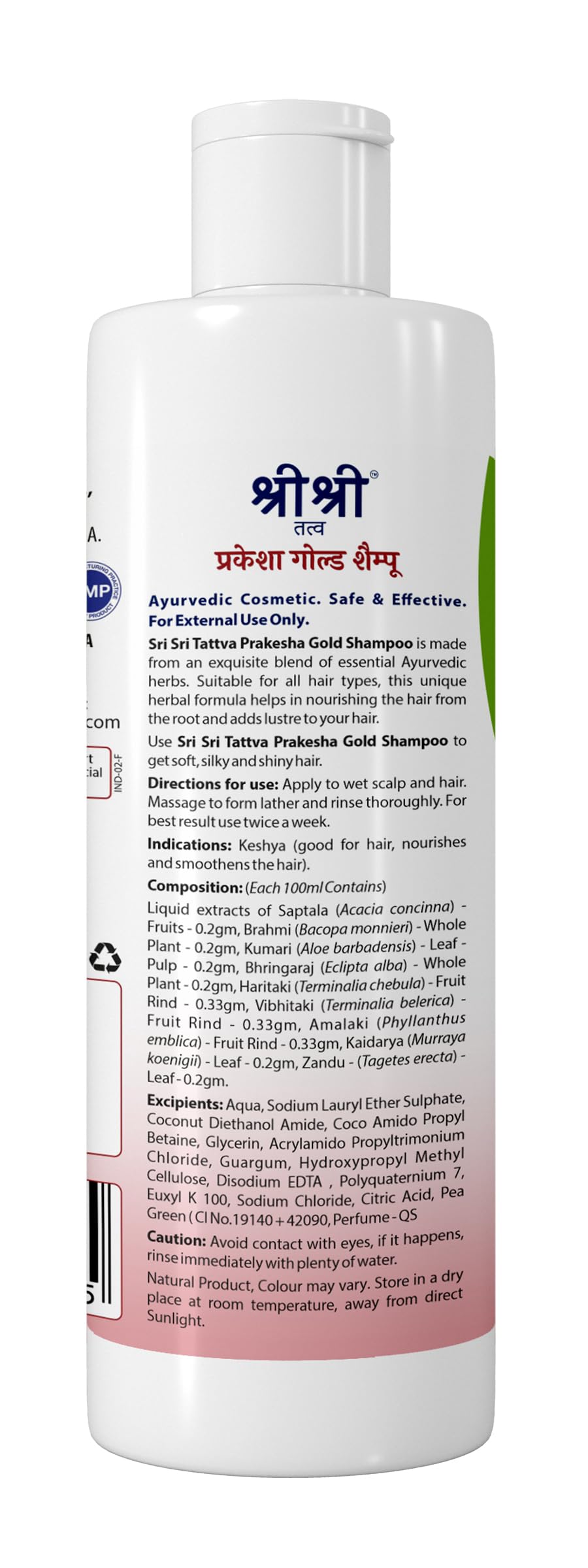 Sri Sri Tattva Prakesha Gold Shampoo is made from an exquisite blend of essential Ayurvedic herbs. Suitable for all hair types this unique herbal formula helps in nourishing the hair from the root and adds lustre to your hair. Use Sri Sri Tattva Prakesha Gold Shampoo to get soft silky and shiny hair.