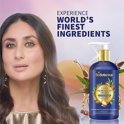 STBOTANICA MOROCCAN ARGAN HAIR CONDITONER Stbotanica Moroccan Argan Hair Conditioner Is Made From Imported Moroccan Argan Oil Which Deeply Nourishes The Hair Making Them Strong Silky And Smooth. It Is A Powerful Combination Of All-natural Oils And Enriching Natural Compounds That Work Together To Create The Ideal Conditioning For Hair. Our Product Is Safe For Daily Use And For Color Treated Hair. StBotanica Moroccan Argan Hair Conditioner With Organic Argan Oil & Vitamin E We Believe in Healing Through a Holistic Approach Using the Natural Resources That the Earth Provides Us With to Offer Effective Botanical Cosmetics and Hi-tech Cosmeceutic. Formulated With Powerful and Functional Natural and Organic Bioactive Ingredients All our Products are Toxins-free No Paraben No Sulfates or Silicones No Mineral Oils No Animal Testing DERMATOLOGICALLY TESTED Our products go through a series of dermatological tests to make sure they are safe for your skin. CRUELTY FREE & VEGAN We are PETA certified as a cruelty-free and vegan company and hence make sure that no animal is harmed during the manufacturing of any of our products. NO TOXINS All our products are free from harmful and toxic chemicand entirely safe for the skin. NATURAL INGREDIENTS We use the best of natural ingredients in the formulations of our products to provide you with only the best.