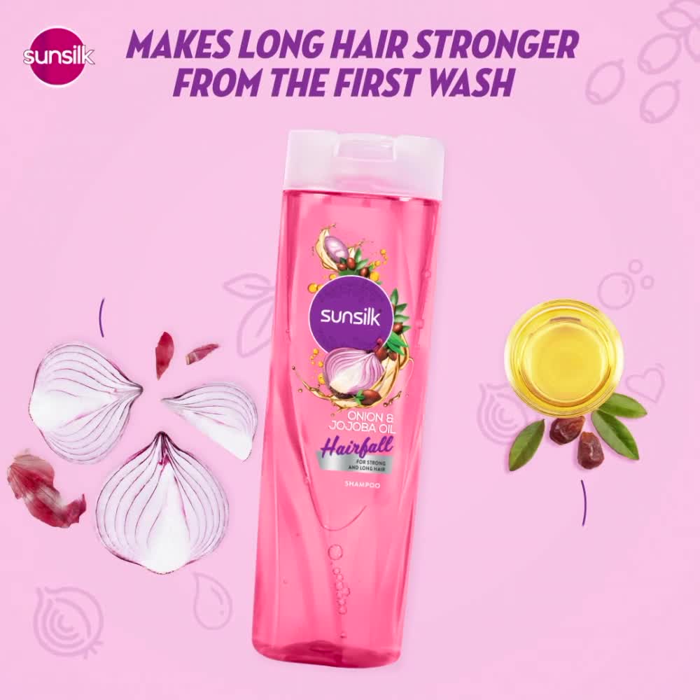 Long hair may mean more hairfall! See the difference in your hairfall from the first wash with Sunsilk Hairfall shampoo infused with the power of onion and goodness of jojoba oil. Onion is known for its hair strengthening properties and good hair benefits. Jojoba Oil is known for its nourishment properties and moisturising benefits. Combined with the goodness of these natural ingredients which are known to be rich in vitamins and minerals the shampoo works best to nourish your long hair and makes it grow stronger from the first wash. Experience a hair care routine that makes your hair strong long and beautiful giving it rich fragrance. The shampoo comes with no added parabens and an exclusive formula which is 90% naturally derived* (Refers to the formulation including water). This shampoo fits the bill when your hair needs some loving and care! For hair to grow longer it needs to be stronger! Directions to use the shampoo: Apply Sunsilk Hairfall shampoo with onion and jojoba oil by gently massaging it all over your hair from roots to the tips. Leave the shampoo on your hair for 2 to 3 minutes and then rinse it off completely. Say goodbye to hairfall worries!