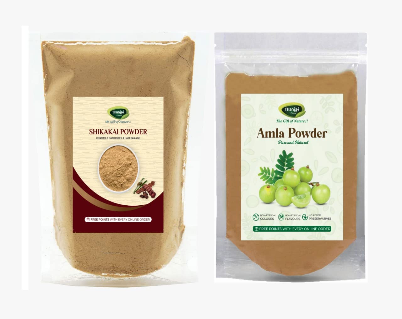 Thanjai Natural Amla and Shikakai Powder for Natural Traditional Hair Wash Shampoo and Conditioner (Each 250g)