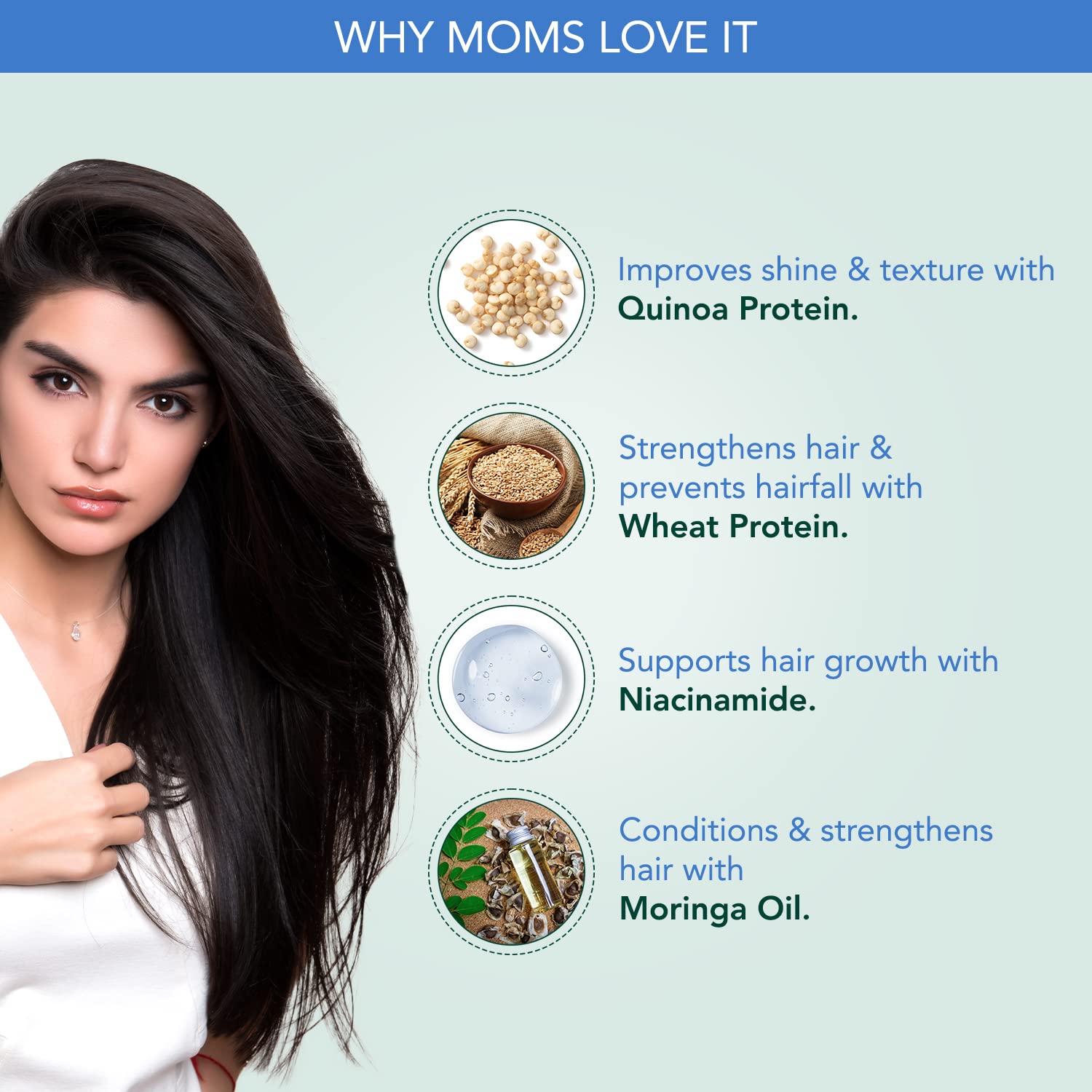 The Moms Co. Natural Protein Conditioner with Wheat & Silk Proteins Argan Oils Murumuru Seed Butter For Nourishes Smoothens & Repairs- (200 ml)The Moms Co. Natural Protein Conditioner with Wheat & Silk Proteins Argan Oils Murumuru Seed Butter For Nourishes Smoothens & RepairsThe Moms Co. Natural Damage Repair KA + Hair Shampoo with Keratin and Moroccan Argan Oil for Dry & Damaged Hair 200mlNatural Damage Repair Shampoo by The Moms Co. strengthens and nourishes dry damaged hair with Keratin and Moroccan Argan Oil. Coconut-based cleansers gently clean the hair Keratin repairs hair structure while Moroccan Argan Oil and Moringa Oil nourish the hair and restore softness and shine.