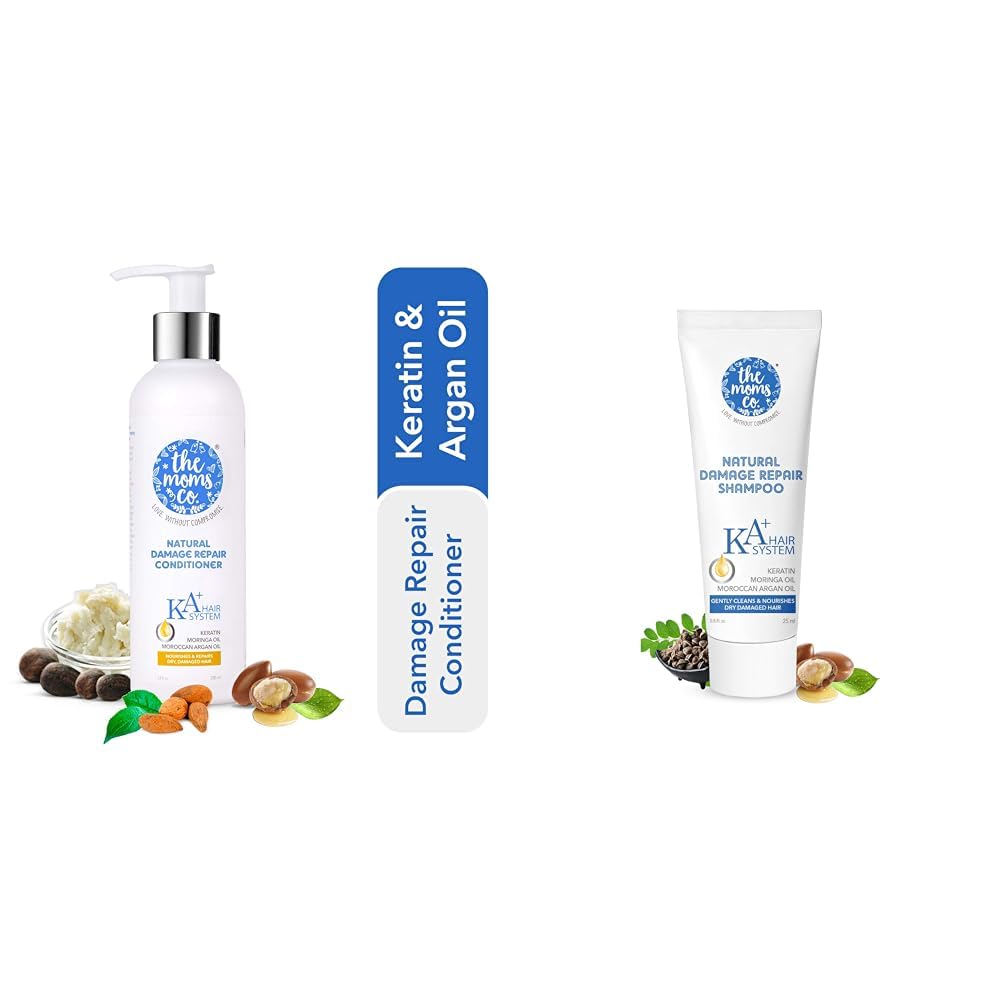 The Moms Co. Natural Damage Repair KA+ Hair Conditioner with Keratin and Moroccan Argan Oil to Hydrate & Moisture frizzy dry damaged hair-200mlThe Moms Co. Natural Damage Repair KA+ Hair Conditioner with Keratin and Moroccan Argan Oil to Hydrate & Moisture frizzy dry damaged haiThe Moms Co. Natural Damage Repair Shampoo | With Keratin & Moroccan Argan Oil | For Dry Damaged hair 25 mlThe Moms Co. Natural Damage Repair Shampoo | With Keratin & Moroccan Argan Oil | For Dry Damaged hai
