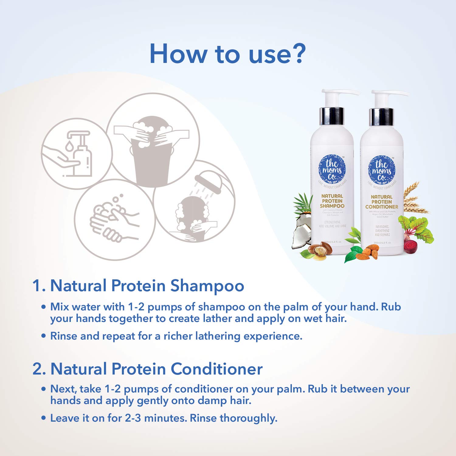 DETOX YOUR HAIR:Typical rich-lathering shampoos rob your hair of their protein and leave a layer of chemicals causing dandruff and hair fall. With the first use of The Moms Co. Hair Strengthening Protein Shampoo you're well on your way for your first hair
