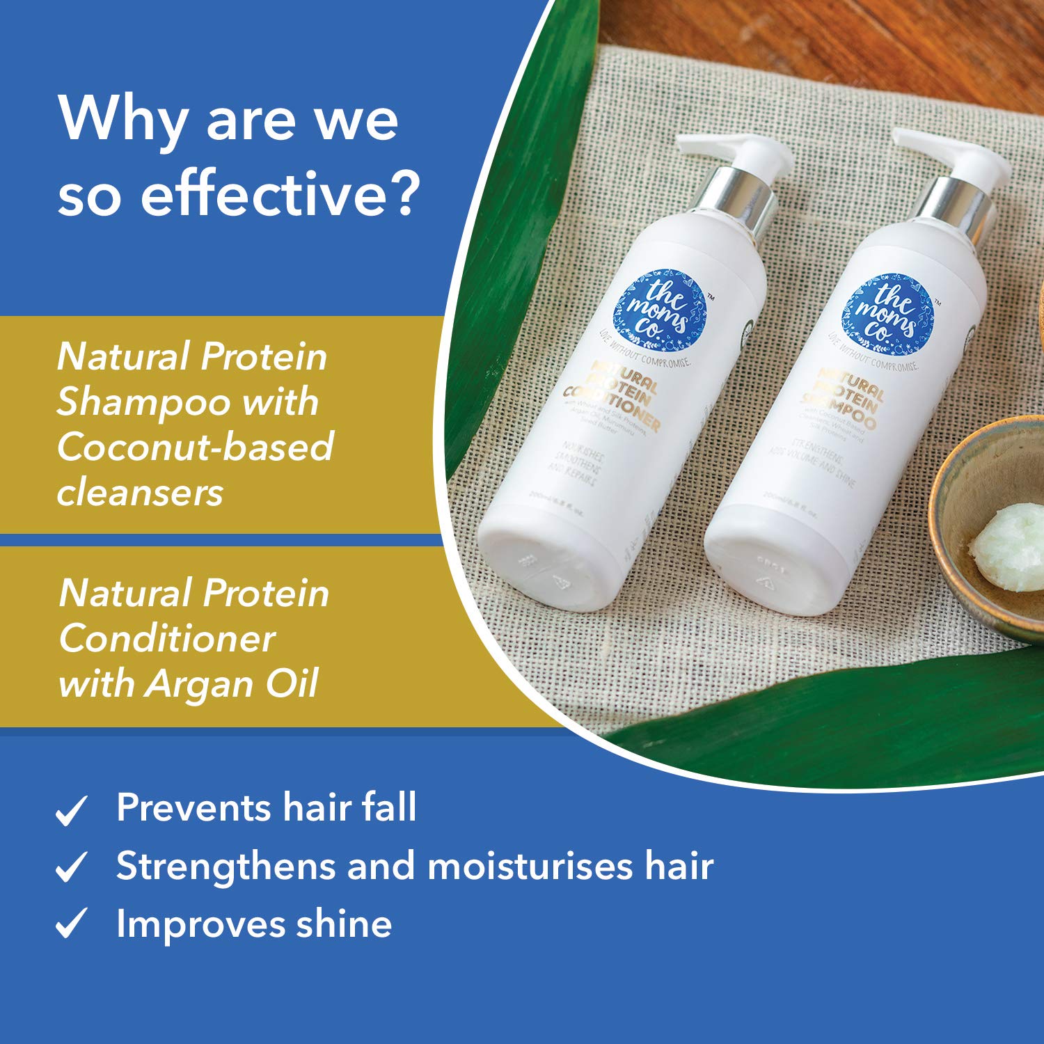 The Moms Co. Natural Protein Hair Strengthening Shampoo & Conditioner Bundle | Strengthens Hair Adds Volume and Shine | Sulphate and Paraben Free Shampoo & Conditioner 200 ML + 200 ML