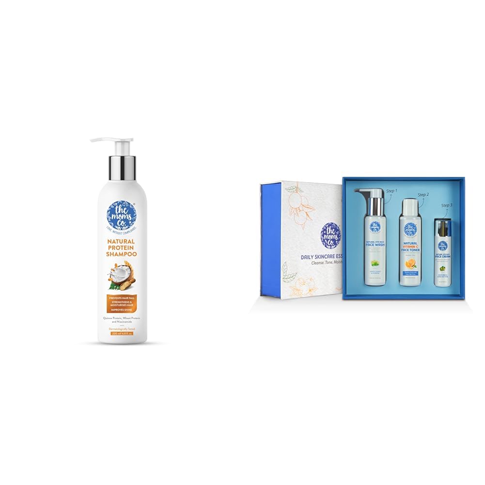 HomeHealth & PersonalHair CareOrganic Shampoos & ConditionersThe Moms Co. Natural Protein Hair Strengthening Shampoo for Women & Men| Shampoo for Hair fall control-200 ml Daily Skincare Essentials Box l All Skin Types l Vitamin C & Hyaluronic Acid