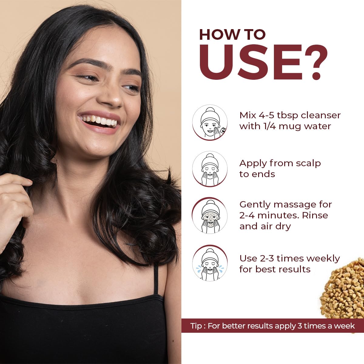 • Direction: Take 4-5 tsp of product (depending on the length of your hair) and mix it with quarter 1/4th mug of water to form a thick liquid consistency Apply it through your hair from the scalp to the ends. Gently massage your scalp with your fingertips i