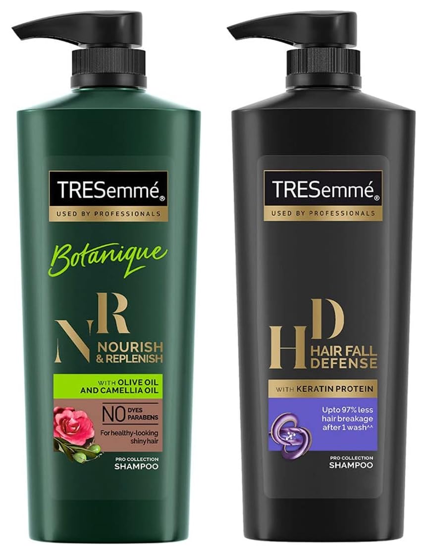 TRESemme Botanique Nourish and Replenish Shampoo 580mlLaunched in 1948 TRESemmé was named after renowned hair care expert Edna Emmé. Up until the 1950's TRESemmé was sold only in salons. Today it is available at a shop near you so that you can have salon style hair at home. For over 60 years TRESemmé has built a history of success in 13 countries around the world. From its origins in 1947 and salon expertise TRESemme has been driven by a simple truth: every woman deserves to look & feel fabulous like she has just stepped out of the salon everyday. This range has been carefully selected for its advanced formula. Driven by our salon heritage we work with our stylists to deliver expert solutions from salon quality products without the salon price tag. Our expertly crafted system is infused with rich botanical blend of olive oil and camelia oil. The system gently cleanses and nourishes hair leaving hair feeling moisturized and beautifully soft. It does not contain Parabens or Dyes and is also safe for color-treated hair. Apply the TRESemme Botanique Nourish & Replenish Shampoo to wet hair gently massage into scalp and work into a lather. Rinse thoroughly from roots to tips. Follow with TRESemme Botanique Nourish & Replenish ConditioneTRESemme Hair Fall Defense Shampoo 580mlLaunched in 1948 TRESemmé was named after renowned hair care expert Edna Emmé. Up until the 1950's TRESemmé was sold only in salons. Today it is available at a shop near you so that you can have salon style hair at home. For over 60 years TRESemmé has built a history of success in 13 countries around the world. From its origins in 1947 and salon expertise TRESemme has been driven by a simple truth: every woman deserves to look & feel fabulous like she has just stepped out of the salon everyday. This range has been carefully selected for its advanced formula. Driven by our salon heritage we work with our stylists to deliver expert solutions from salon quality products without the salon price tag. Our salon inspired products enriched with high quality ingredients help you experience that salon feeling everyday. The Tresemme Hair Fall Defense Shampoo helps reinforce your hair strength and prevents hair fall due to breakage. For longer and stronger hair. Enriched with advanced quality ingredients the formula is scientifically constituted to give you longer stronger & manageable hair with every wash. It works best on damaged and breakage-prone hair.Get this small bottle of 580 ml now and give your hair a luscious confident bounce. For best results use daily with TRESemme Hair Fall Defense Conditioner.