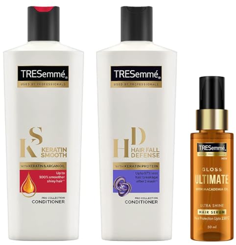 TRESemme Gloss Ultimate Ultra Shine Hair Serum 50ml with Macadamia Oil & Tresemme Keratin Smooth, Conditioner, 190ml, for Smoother, Shinier Hair, with Keratin & Tresemme Hair Fall Defence, Conditioner, 190ml, for Longer, Stronger Hair, with Keratin Protei
