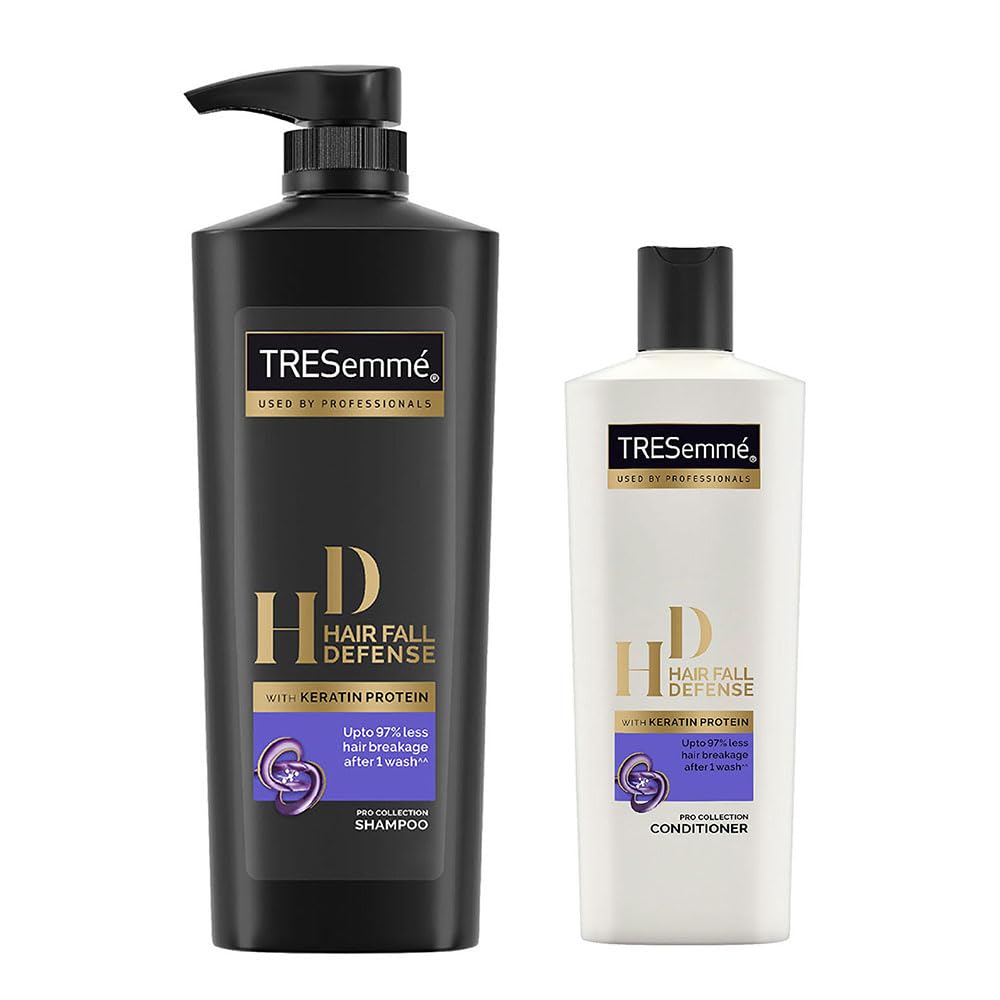 TRESemmé Hair Fall Defense Shampoo works best on damaged and breakage-prone hair. It helps reinforce hair strength and prevents hair fall due to breakage giving you longer and stronger hair. Enriched with Keratin protein TRESemmé Hair Fall Defense Shampoo gives upto 97% less hair breakage after one wash. Its advance quality ingredients and scientifically constituted formula will leave you with longer stronger and manageable hair. This range has been carefully selected for its advanced formula. It is extremely beneficial for damaged hair prone to easy breakage. The Keratin in this hair shampoo helps in strengthening your hair and provides hydration as well as elasticity to your hair. TRESemmé Hair Fall Defense Shampoo is especially formulated for Indian hair and is suitable for use in conjunction with oil treatments. Give your hair a luscious confident bounce and salon quality smoothness without the salon price tag! Buy now to control hair breakage and prevent hair fall happening due to breakage. For best results use this shampoo along with the TRESemmé Hair Fall Defense Conditioner. Shampoo for men and women. To use: Apply gently to wet hair and massage to work into a lather. Rinse thoroughly. For an extra boost of protection follow with TRESemmé Hair Fall Defense Conditioner.
