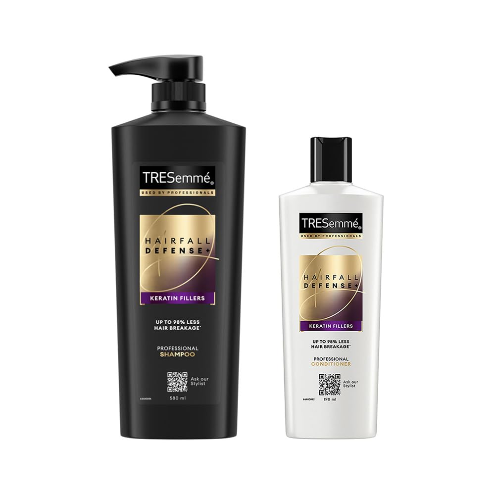 TRESemmé Hair Fall Defense Shampoo works best on damaged and breakage-prone hair. It helps reinforce hair strength and prevents hair fall due to breakage giving you longer and stronger hair. Enriched with Keratin protein TRESemmé Hair Fall Defense Shampoo gives upto 97% less hair breakage after one wash. Its advance quality ingredients and scientifically constituted formula will leave you with longer stronger and manageable hair. This range has been carefully selected for its advanced formula. It is extremely beneficial for damaged hair prone to easy breakage. The Keratin in this hair shampoo helps in strengthening your hair and provides hydration as well as elasticity to your hair. TRESemmé Hair Fall Defense Shampoo is especially formulated for Indian hair and is suitable for use in conjunction with oil treatments. Give your hair a luscious confident bounce and salon quality smoothness without the salon price tag! Buy now to control hair breakage and prevent hair fall happening due to breakage. For best results use this shampoo along with the TRESemmé Hair Fall Defense Conditioner. Shampoo for men and women. To use: Apply gently to wet hair and massage to work into a lather. Rinse thoroughly. For an extra boost of protection follow with TRESemmé Hair Fall Defense Conditioner.