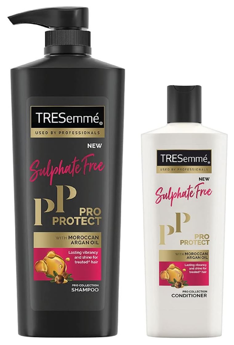 TRESemme Pro Protect Sulphate Free Shampoo 580 mlLaunched in 1948 TRESemmé was named after renowned hair care expert Edna Emmé. Up until the 1950s TRESemmé was sold only in salons. Today it is available at a shop near you so that you can have salon-style hair at home. For over 60 years TRESemmé has built a history of success in thirteen countries around the world. From its origins in 1947 and salon expertise TRESemmé has been driven by a simple truth: Every woman deserves to look and feel fabulous like she has just stepped out of the salon everyday. This range has also been carefully selected for its advanced formula. TRESemmé Pro Protect Shampoo is the first sulphate-free variant which is infused with the goodness of Moroccan Argan Oil. It is highly beneficial for people having coloured hair because it helps in retaining hair colour along with lending a long-lasting vibrancy and shine to the hair. For best results use it with TRESemmé Pro Protect Conditioner.TRESemme Pro Protect Sulphate Free Conditioner 190 mlLaunched in 1948 TRESemmé was named after renowned hair care expert Edna Emmé. Up until the 1950s TRESemmé was sold only in salons. Today it is available at a shop near you so that you can have salon-style hair at home. For over 60 years TRESemmé has built a history of success in thirteen countries around the world. From its origins in 1947 and salon expertise TRESemmé has been driven by a simple truth: Every woman deserves to look and feel fabulous like she has just stepped out of the salon everyday. This range has also been carefully selected for its advanced formula. TRESemmé Pro Protect Shampoo is the first sulphate-free variant which is infused with the goodness of Moroccan Argan Oil. It is highly beneficial for people having coloured hair because it helps in retaining hair colour along with lending a long-lasting vibrancy and shine to the hair. For best results use it with TRESemmé Pro Protect Conditioner.