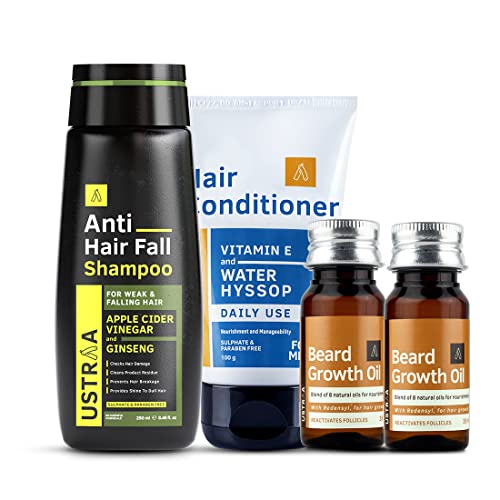Beard Growth Oil Beard deserves attention not stress. We realized that a lot of our brothers are stressed with beard growth problems and we took it as our own.We searched and found a breakthrough molecule that is natural and helps boost hair growth. We mixed it with 8 natural oils renowned for hair health and also empowered it with Vitamin-E. Backed by the research team and not by the marketing team this product is what you have always looked for.Argan Oil Almond Oil Avocado Oil Castor Oil Acai Berry Oil Olive Oil Watermelon Seed Oil Gooseberry oil Vitamin-E form a Beard Bro gang that fights all your beard growth worries. Anti Hair Fall Shampoo Ustraa Anti Hair Fall Shampoo is the defence you will need against hair fall. We've added ginseng an ancient Chinese ingredient that is known to prevent hair loss and helps strengthen weak and falling hair. Conditioner-Daily Use Conditioning after shampoo keeps your hair soft and manageable. USTRAA Daily Use Conditioner is formulated with best of ingredients to do just that. 1. Vitamin E that promotes hair health and quality. 2. Water Hyssop (Brahmi) one of Ayurveda's best-known ingredients that strengthens hair follicles. 3. Wheatgerm that contains Vitamins which makes it a great conditioner for hair. 4. Evening Primrose that nourishes the scalp and promotes healthy hair growth. For best results use with Ustraa Daily Use Shampoo.