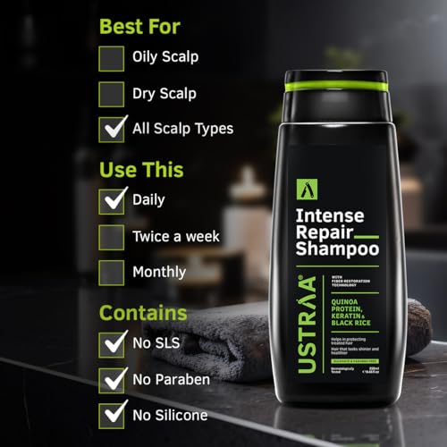 Ustraa Intense Repair Shampoo - 250 ml - Set of 2 | Fiber Restoration Technology | Helps Protect & Restore Hair Bonds | with Black Rice, Quinoa Extracts & Keratin | No SLS, No Paraben