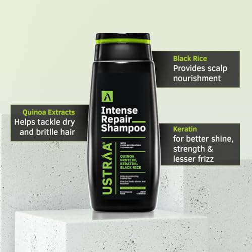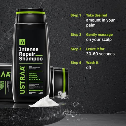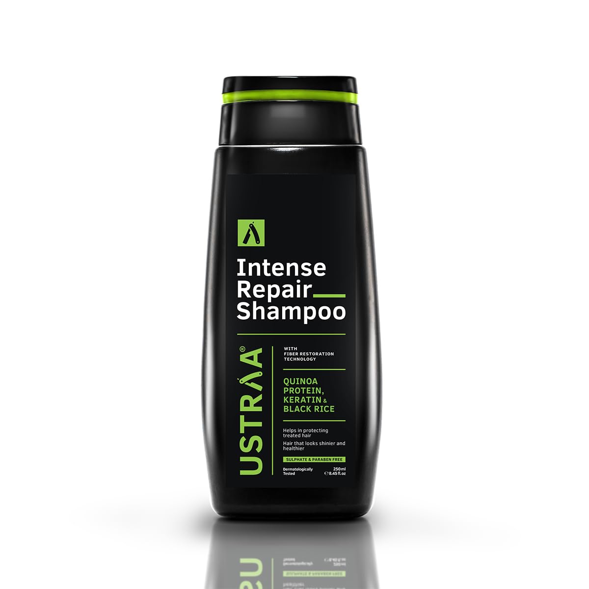 Ustraa Intense Repair Shampoo - 250ml - with Fiber Restoration Technology | with Black Rice & Keratin | Helps Protect Treated Hair | for Shinier & Healthier Hair | NO SLS, NO PARABEN