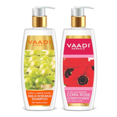 The shampoo in this combination is an expert remedy for hair-fall condition and follows a triple-action planâ promoting healthy scalp strengthening hair roots and deep-conditioning hair. Shikakai and Reetha keep the scalp free of infections and promote hair growth. The mineral content of Corn Rose & Hibiscus Extract moisturizes & nourishes each strand from root to tip increase hair elasticity and repairs damage. The result is stronger softer and shinier hair with each use.