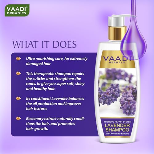 Ultra nourishing care for even extremely damaged hair this therapeutic shampoo repairs the cuticles and strengthens the roots to give you super soft shiny and healthy hair. Its constituent lavender balances the oil production and improves hair texture. Rosemary extract naturally conditions the hair and promotes hair growth. What causes damage to the hair? They can make or mar your first impressions. A glossy healthy mane always speaks for itself but in today's hectic lifestyle it is almost impossible to take care of hair. Sun's UV rays wind pollution excessive shampoo heat styling hard water and stress are some of the important factors that damage hair and cause hair fall. While extreme weather conditions target the hair follicles growth is tapered with and these also give rise to a number of hair problems. Be it premature greying hair fall dandruff lice itching lack-lusterless etc. The hair contains keratin which makes them strong shiny and healthy. When hair follicles aren't strong enough hair-growth is hampered. Regular shampoo and conditioning with a good therapeutic shampoo will bring back the life in your hair. Chemicals damage hair to an extent that only an effective therapeutic shampoo can regenerate hair follicles' strength and improve hair texture. What are the benefits of Lavender in Hair care? Lavender Oil is a well-known aromatherapy oil that is extracted by the process of stream distillation from flowers of lavender plant. With its intoxicating aroma that calms the nerves and helps DE-stress Lavender Oil restores the scalp moisture lost to excessive weather conditions and improves the texture of the hair. Scalp conditions are distorted with the external stimuli acting on it making it vulnerable to fungi (dandruff) lice and dullness. Lavender Oil effectively tackles hair loss. Even severe conditions like Alopecia areata wherein bald patches are formed on the scalp can be treated with Lavender oil. Dry scalp lice eggs limpness thinning etc. are things of past when it comes to Lavender Oil. Dandruff and itchiness disappear within a few days of use. Lavender Oil soothes the senses and works miraculously to give you that dream mane. How is Rosemary essential in nourishing damaged hair? One of the most important aspects of hair care is its growth. With everything natural being used to cleanse and condition hair Rosemary or Rosmarinus Officinalis plays a pivotal role in nourishing hair and nullifying the damage caused by the various factors including extreme weather bad hair care regime or even heat styling. Rosemary a naturally fragrant herb makes up for the perfect volumizer and deep-conditioner for the hair as it makes hair more manageable glossier and healthier. Split ends and itchiness vanish away within days of Rosemary treatment. A soft and beautiful mane is a gift of Rosemary's nourishment and root to tip care. A radiant shine is evident.
