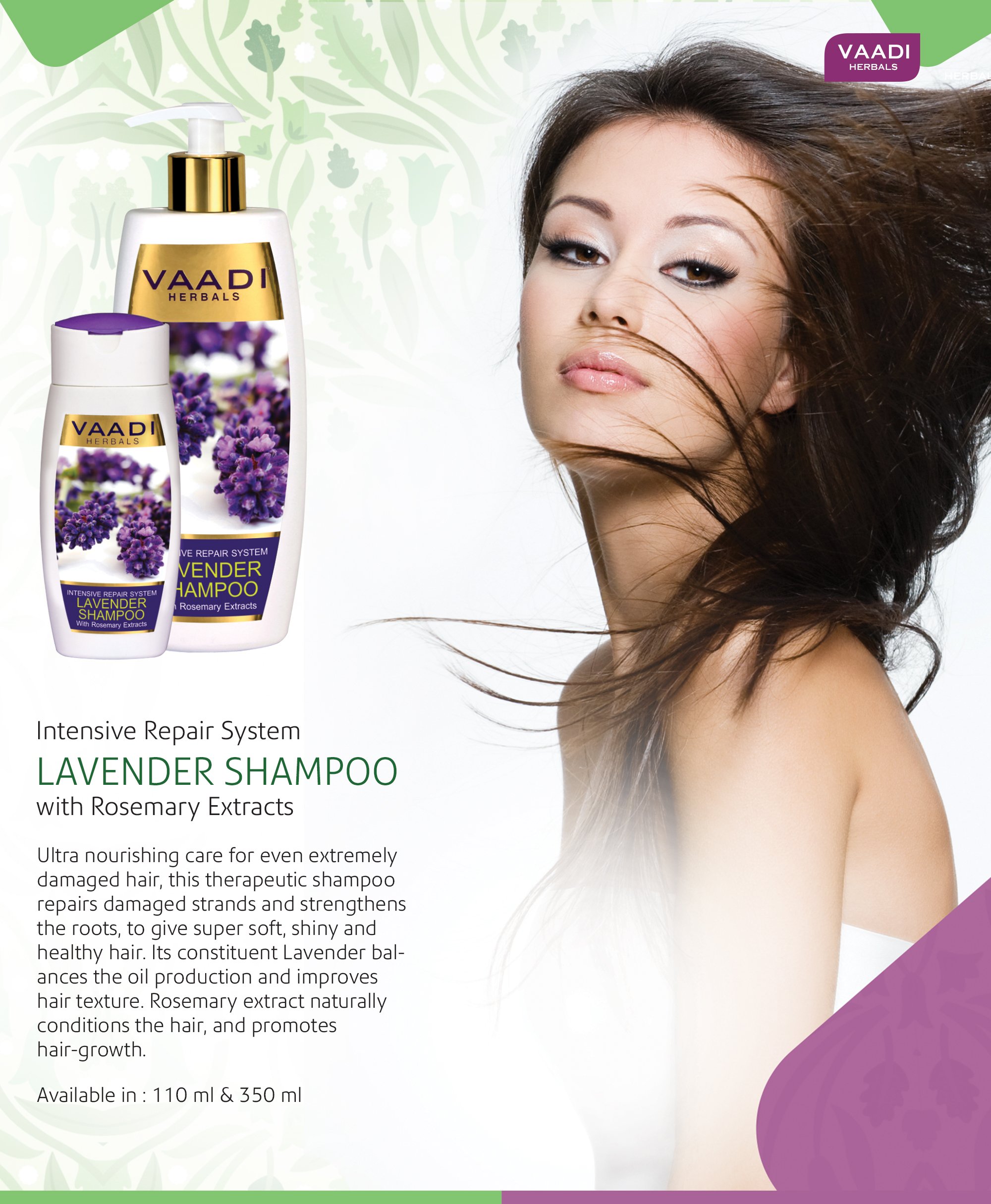 Ultra nourishing care for even extremely damaged hair this therapeutic shampoo repairs the cuticles and strengthens the roots to give you super soft shiny and healthy hair. Its constituent lavender balances the oil production and improves hair texture. Rosemary extract naturally conditions the hair and promotes hair growth. What causes damage to the hair? They can make or mar your first impressions. A glossy healthy mane always speaks for itself but in today's hectic lifestyle it is almost impossible to take care of hair. Sun's UV rays wind pollution excessive shampoo heat styling hard water and stress are some of the important factors that damage hair and cause hair fall. While extreme weather conditions target the hair follicles growth is tapered with and these also give rise to a number of hair problems. Be it premature greying hair fall dandruff lice itching lack-lusterless etc. The hair contains keratin which makes them strong shiny and healthy. When hair follicles aren't strong enough hair-growth is hampered. Regular shampoo and conditioning with a good therapeutic shampoo will bring back the life in your hair. Chemicals damage hair to an extent that only an effective therapeutic shampoo can regenerate hair follicles' strength and improve hair texture. What are the benefits of Lavender in Hair care? Lavender Oil is a well-known aromatherapy oil that is extracted by the process of stream distillation from flowers of lavender plant. With its intoxicating aroma that calms the nerves and helps DE-stress Lavender Oil restores the scalp moisture lost to excessive weather conditions and improves the texture of the hair. Scalp conditions are distorted with the external stimuli acting on it making it vulnerable to fungi (dandruff) lice and dullness. Lavender Oil effectively tackles hair loss. Even severe conditions like Alopecia areata wherein bald patches are formed on the scalp can be treated with Lavender oil. Dry scalp lice eggs limpness thinning etc. are things of past when it comes to Lavender Oil. Dandruff and itchiness disappear within a few days of use. Lavender Oil soothes the senses and works miraculously to give you that dream mane. How is Rosemary essential in nourishing damaged hair? One of the most important aspects of hair care is its growth. With everything natural being used to cleanse and condition hair Rosemary or Rosmarinus Officinalis plays a pivotal role in nourishing hair and nullifying the damage caused by the various factors including extreme weather bad hair care regime or even heat styling. Rosemary a naturally fragrant herb makes up for the perfect volumizer and deep-conditioner for the hair as it makes hair more manageable glossier and healthier. Split ends and itchiness vanish away within days of Rosemary treatment. A soft and beautiful mane is a gift of Rosemary's nourishment and root to tip care. A radiant shine is evident.