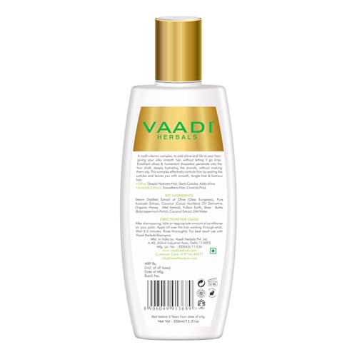 A multi vitamin complex to add beauty and life to your hair giving you silky smooth hair without letting it go limp. Emollient olives and humectant avocados penetrate into the hair shaft deeply hydrating the strands without making them oily. This complex effectively controls frizz by sealing the cuticles and leaves you with smooth tanglefree and lustrous hair. Why is a conditioner important after shampooing your hair? When hair are washed with the impurities and dirt an important substance is also lost to froth. This is called sebum which in other words is the oil secreted by sebaceous glands in the scalp to maintain moisture balance in hair and keep them from drying out. So the conditioner is just a replacement for that lost sebum. It keeps hair shiny healthy and soft. Benefits of using a conditioner with natural ingredients is evident from the fact that no unnecessary chemicals get to play with your scalp and damage the recently-washed hair follicles. Conditioner protects the hair from pullutants wind sun etc. How is Olive Oil beneficial to the hair? Olive Oil proves to be the best hair conditioner thanks to its emollient properties that allow it to seep in the scalp and moisturize it so as to keep dry patches baldness and frizz away. Hair strength and elasticity improves and hair feels softer stronger and smooth in texture. Being anti-inflammatory in nature Olive oil prevents scalp conditions and dandruff. The high levels of Vitamin E and mono-saturated fatty acids make Olive Oil a very useful antioxidant to keep hair safe from free radicals. Olive Oil adapts according to the scalp type. What role do Avocado Extracts play in conditioning the hair? With a lovely smooth texture and length of hair frizz mars the attractiveness as it gives rise to brittle hair and fly aways. Cuticles are exposed and prone to scalp conditions like lice dandruff allergies and importantly impurities. After proper cleansing it is important to keep the moisture of the scalp intact so as to avoid dry patches and further baldness. Avocado Extracts promote hair growth and to dry and damaged hair they are a boon. Packed with Vitamin E and B Avocados work to the cells so as to stimulate growth. Dry and damaged hair do not grow property. Vitamin E makes sure to heal the scalp so as to make way for healthy hair that glows with shine.
