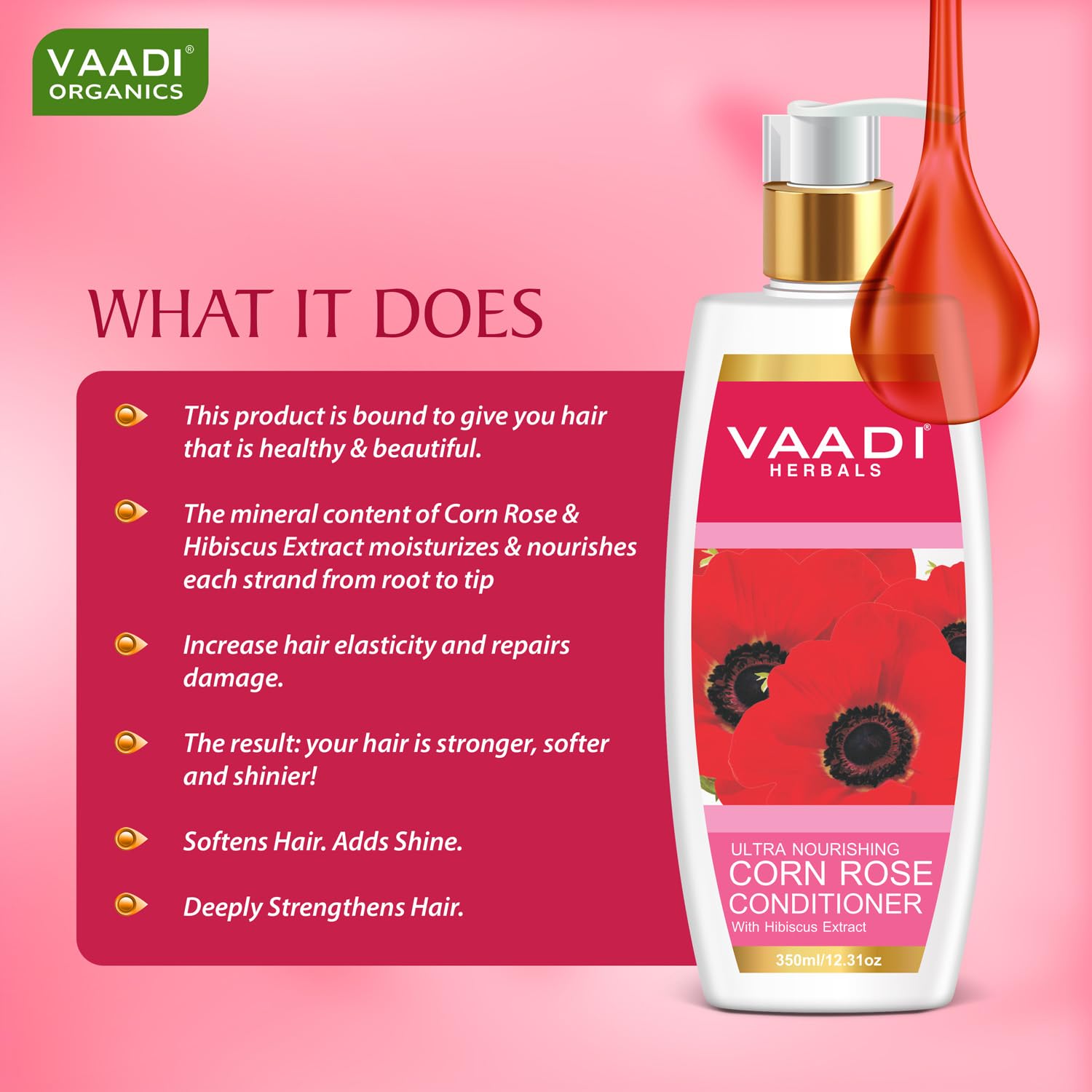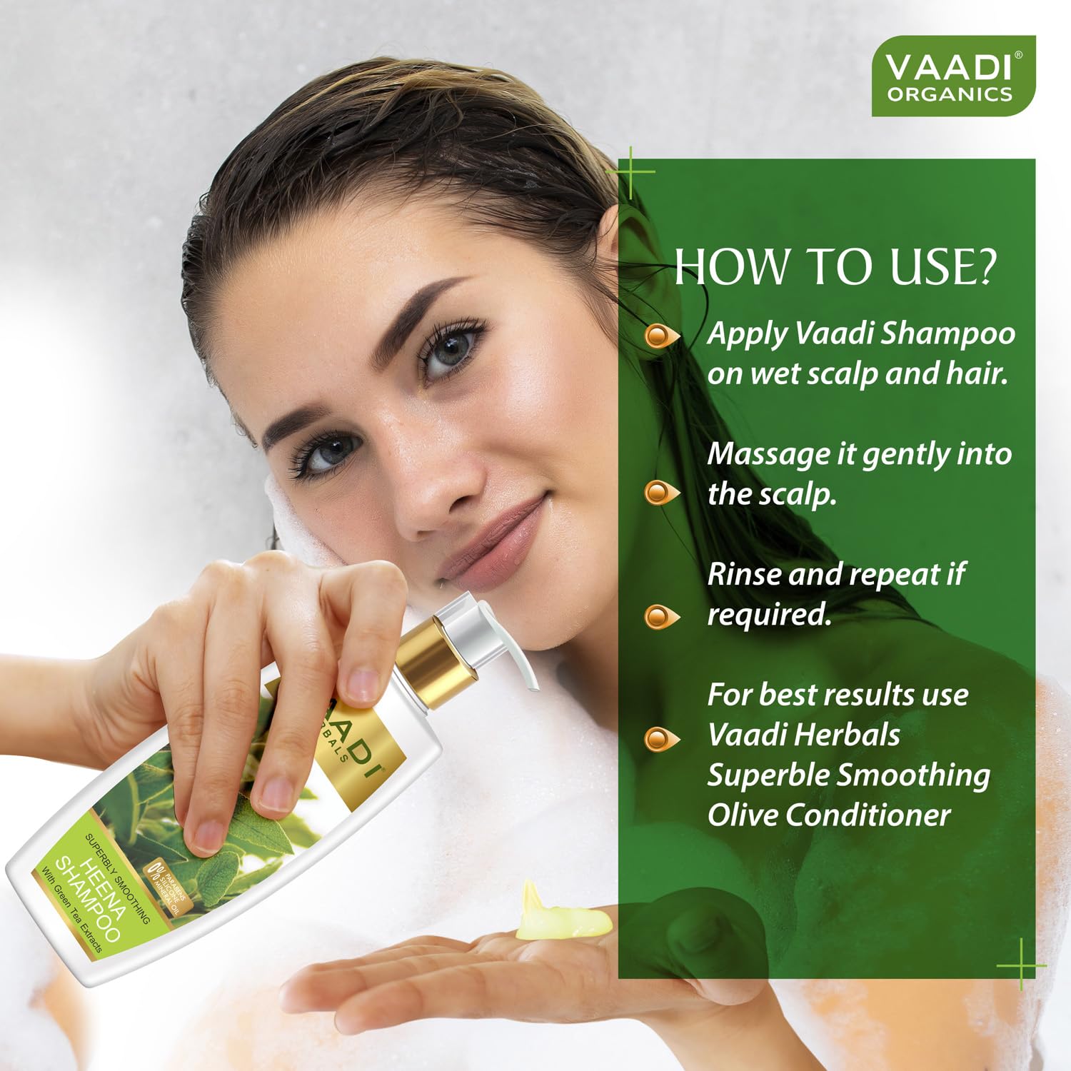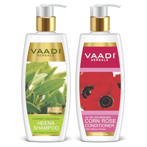 Vaadi Herbals Superbly Smoothing Heena Shampoo, 350ml with Corn Rose Conditioner, 350ml