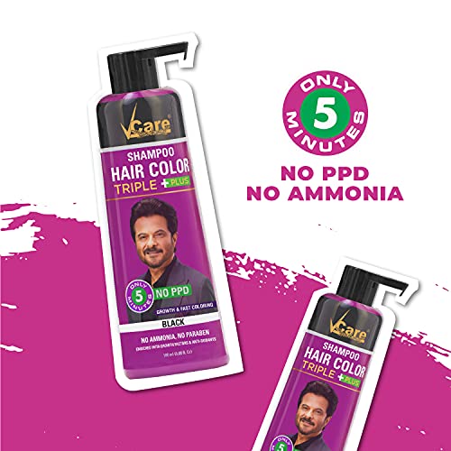 Vcare Hair Color Triple Plus Shampoo Hair Color (Black) - 180 ml Instant Hair Color Shampoo - 5 min Hair Color Shampoo -You can change your hair color to black hair with this hair colour shampoo black in just 5 minutes with simple instructions.