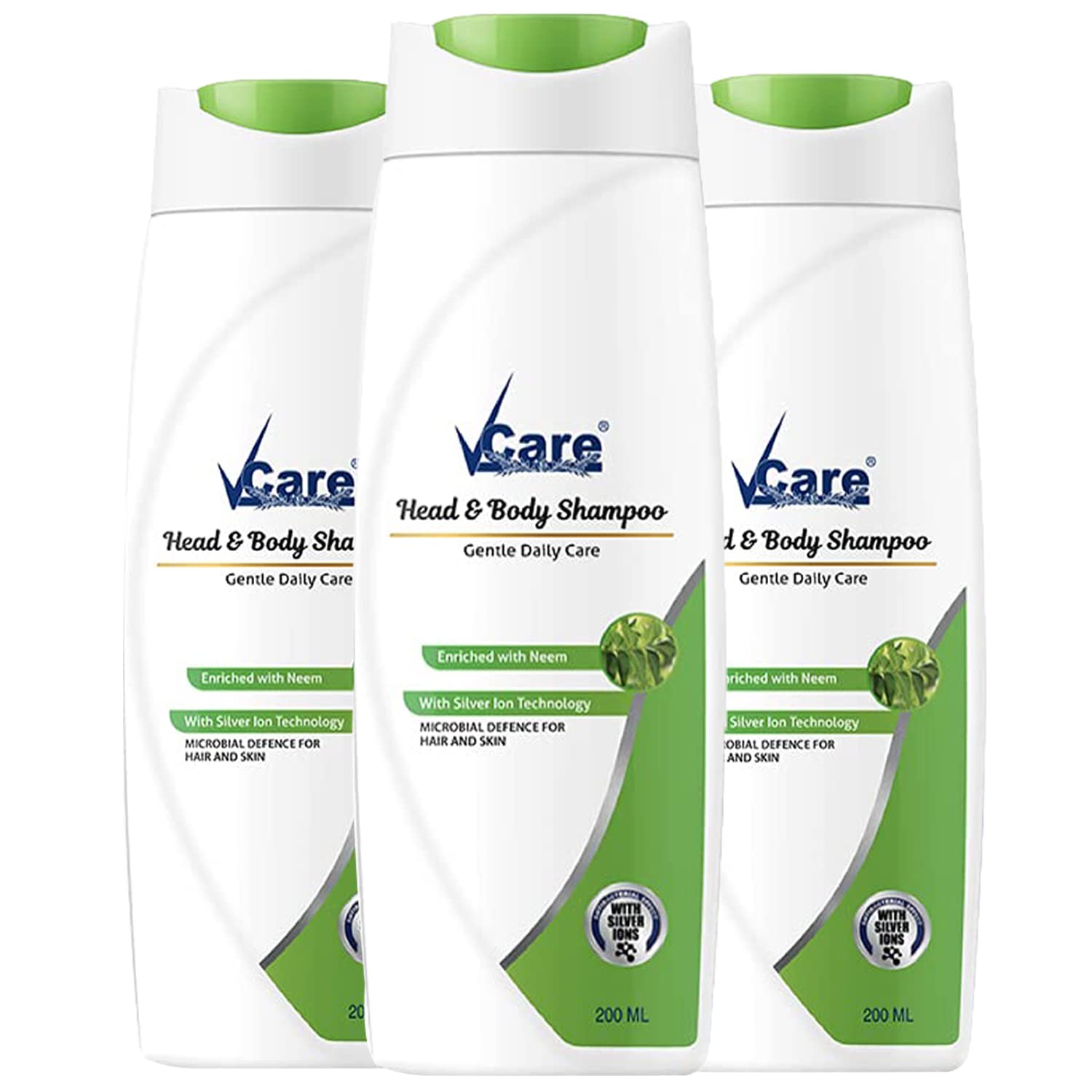 VCare Head & Body Shampoo for Hair & Skin 200 ml (Pack Of 3) Enriched with Neem and Silver Iron Technology