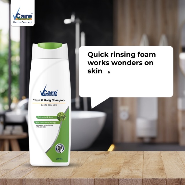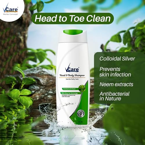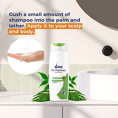 VCare Head & Body Shampoo for Hair & Skin, 200 ml, (Pack Of 3), Enriched with Neem and Silver Iron Technology